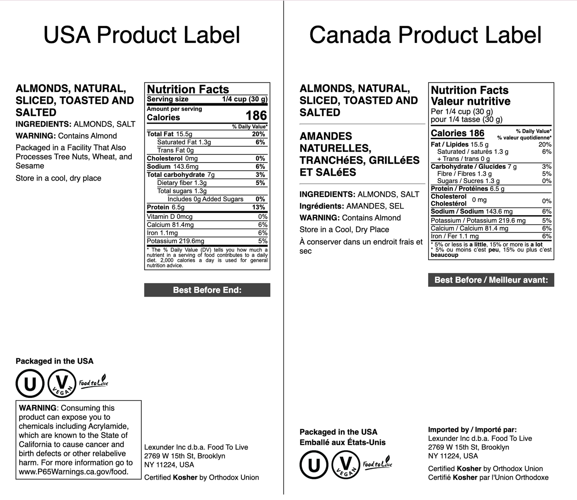 Dry Roasted Natural Sliced Almonds with Himalayan Salt - by Food To Live