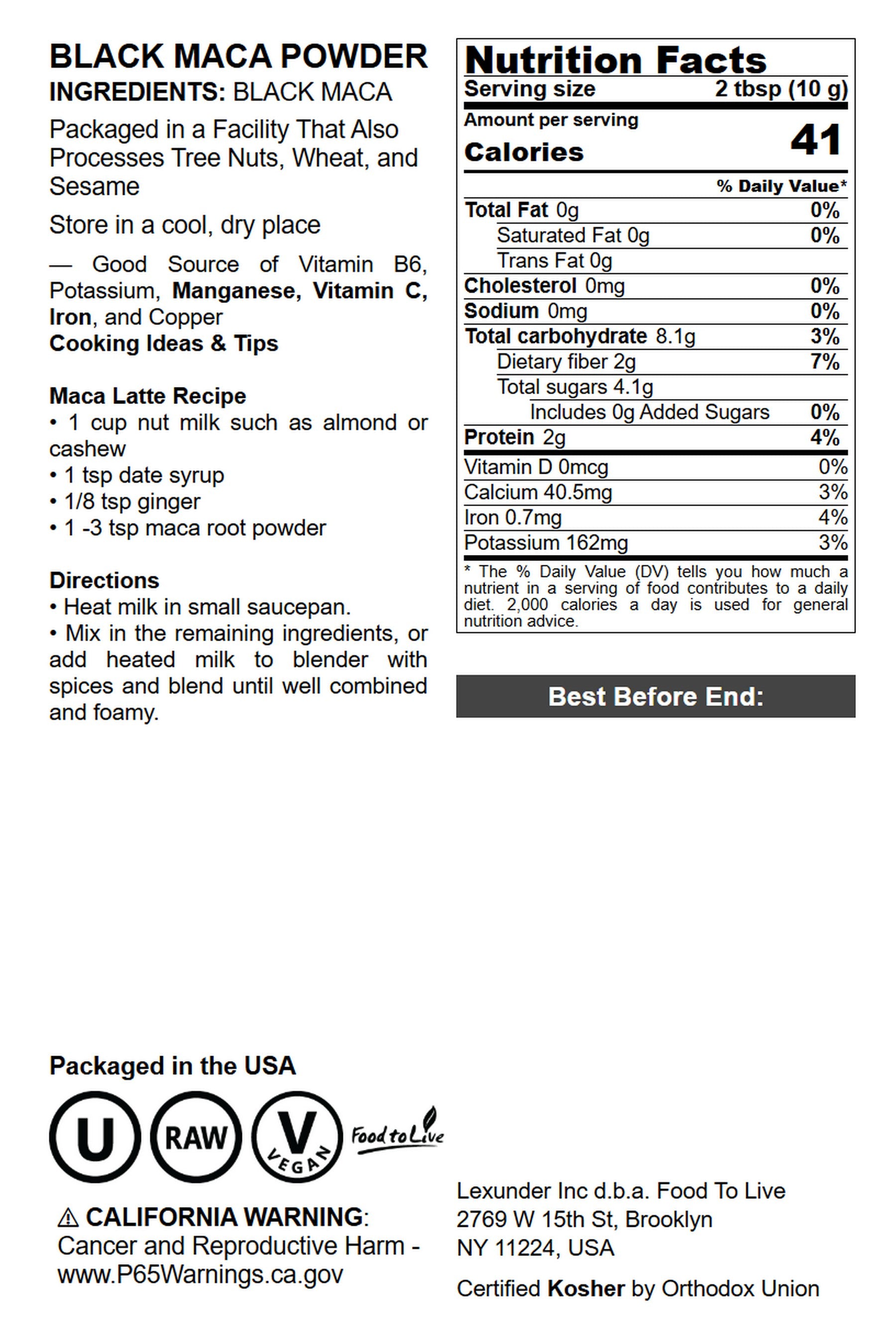 Black Maca Powder - Finely Ground Raw Dried Root, Kosher, Vegan, Non-Gelatinized Powder. Energizing Superfood Supplement. Perfect for Smoothies, Granola, Oats, and Drinks. Bulk