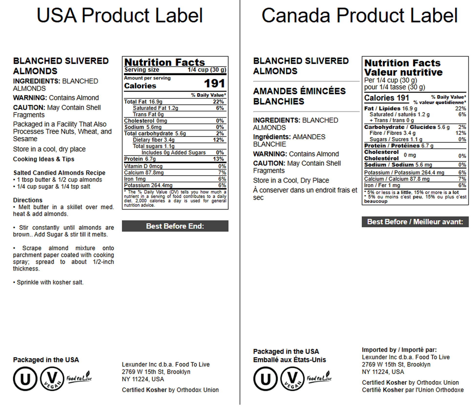 Blanched, Slivered Almonds — Non-GMO Verified, Kosher, Raw, Vegan - by Food to Live