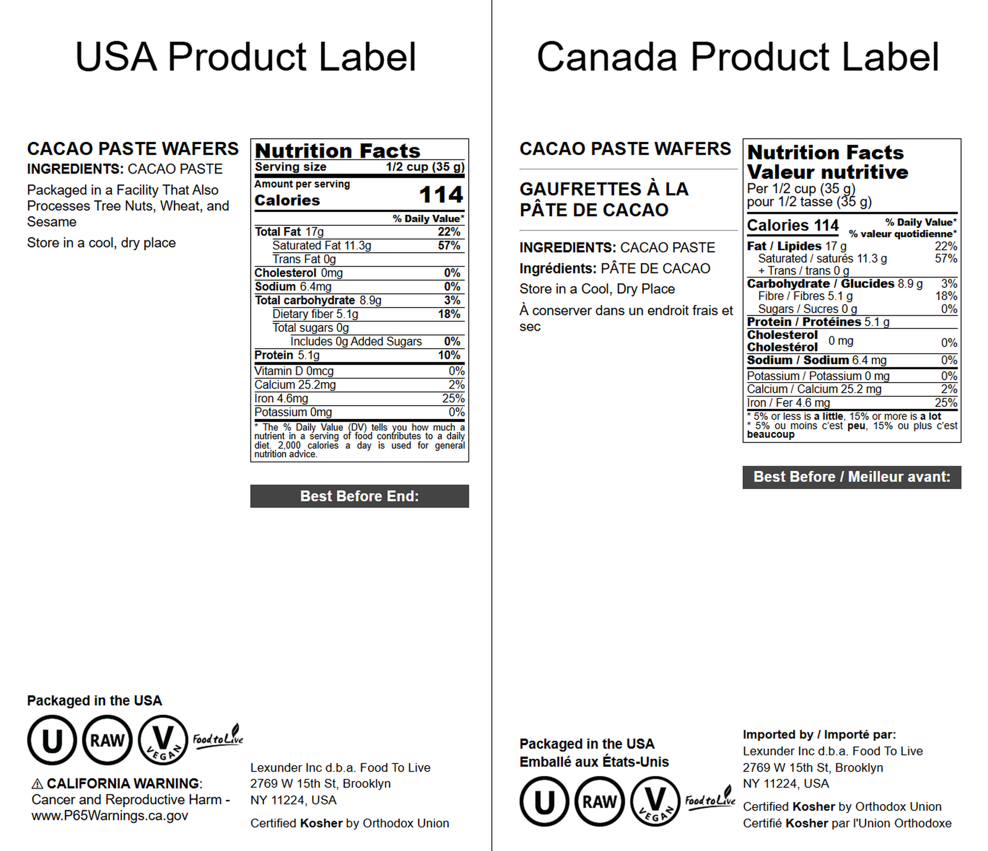 Cacao Paste Wafers by Food to Live is a natural product made from cacao beans. No additives added. Cacao Paste Wafers is simply perfect for making chocolate barks, cacao drinks and desserts, pastries, ice cream, and other sweets.