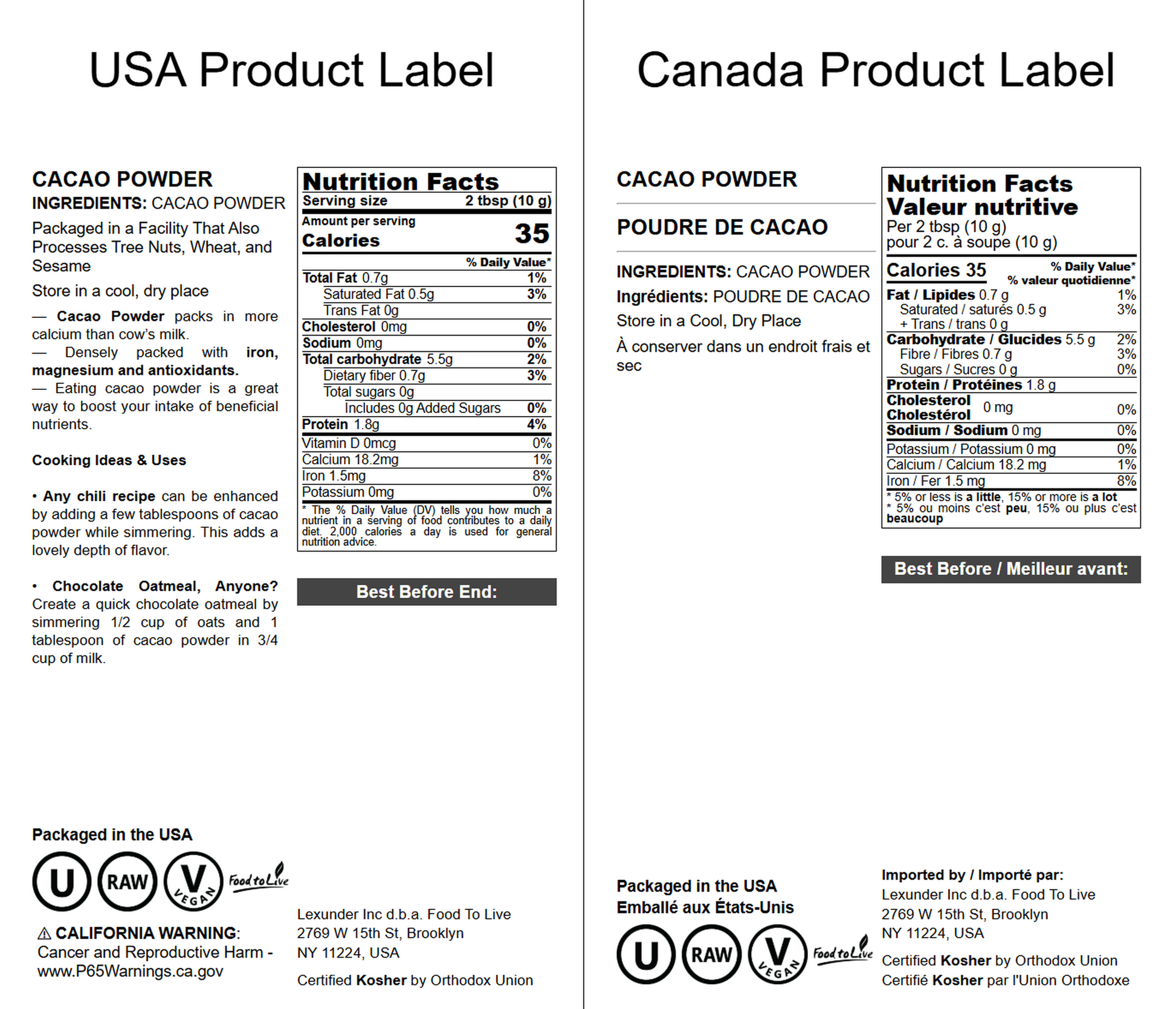 - ✔️FOOD TO LIVE CACAO POWDER FEATURES: Kosher, Raw, Vegan, Vegetarian
