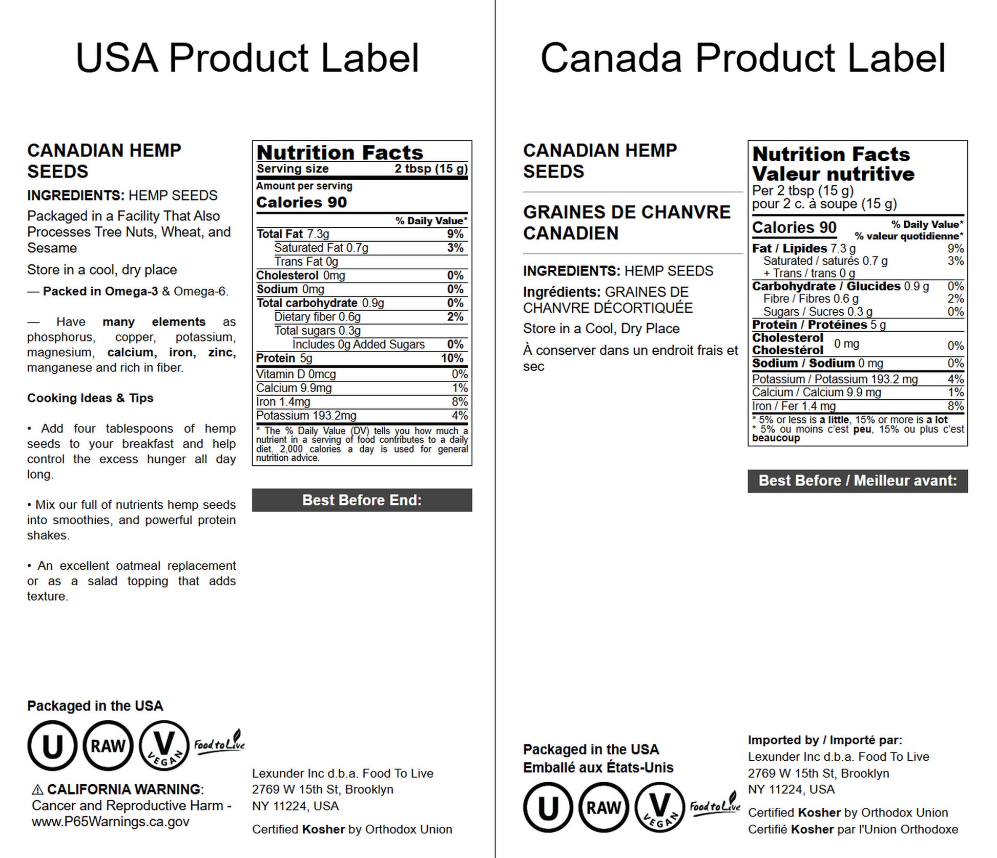 Canadian Hemp Seeds — Non-GMO Verified, Raw Hearts, Hulled, Shelled, Kosher, Vegan, Keto and Paleo Friendly, Rich in Protein, Omegas 3 & 6 - by Food to Live