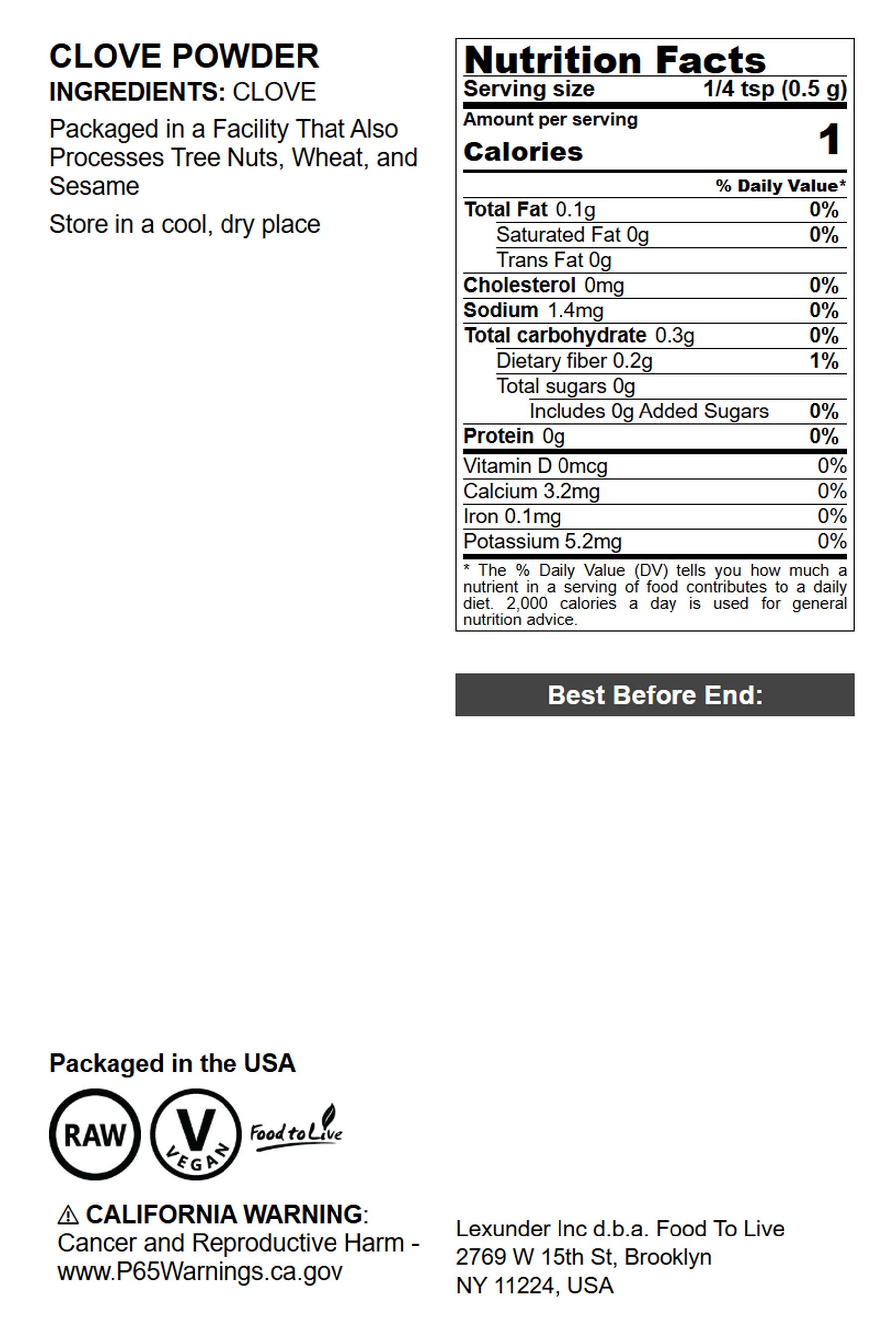 - PREMIUM QUALITY, 100% RAW, VEGAN: Clove Powder by Food to Live is of Premium Quality, 100% Raw, Vegan, contains NO additives, and is free of cholesterol.