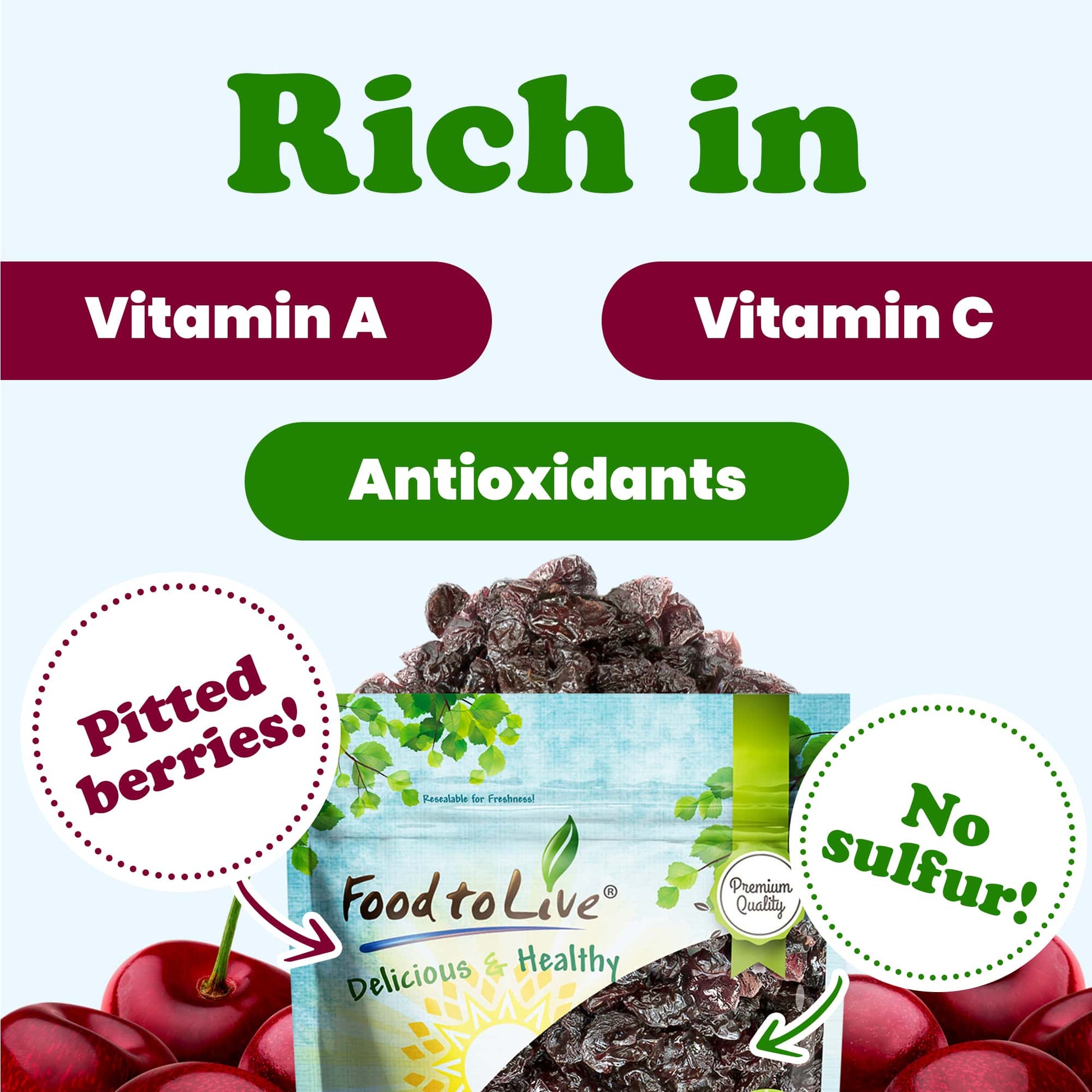Dried Sour Cherries – Tart, Soft & Juicy Nature's Candy. Whole Fruit Snack. Lightly Sweetened and Coated with Vegetable Oil. Pitted, Unsulphured, Vegan, Bulk