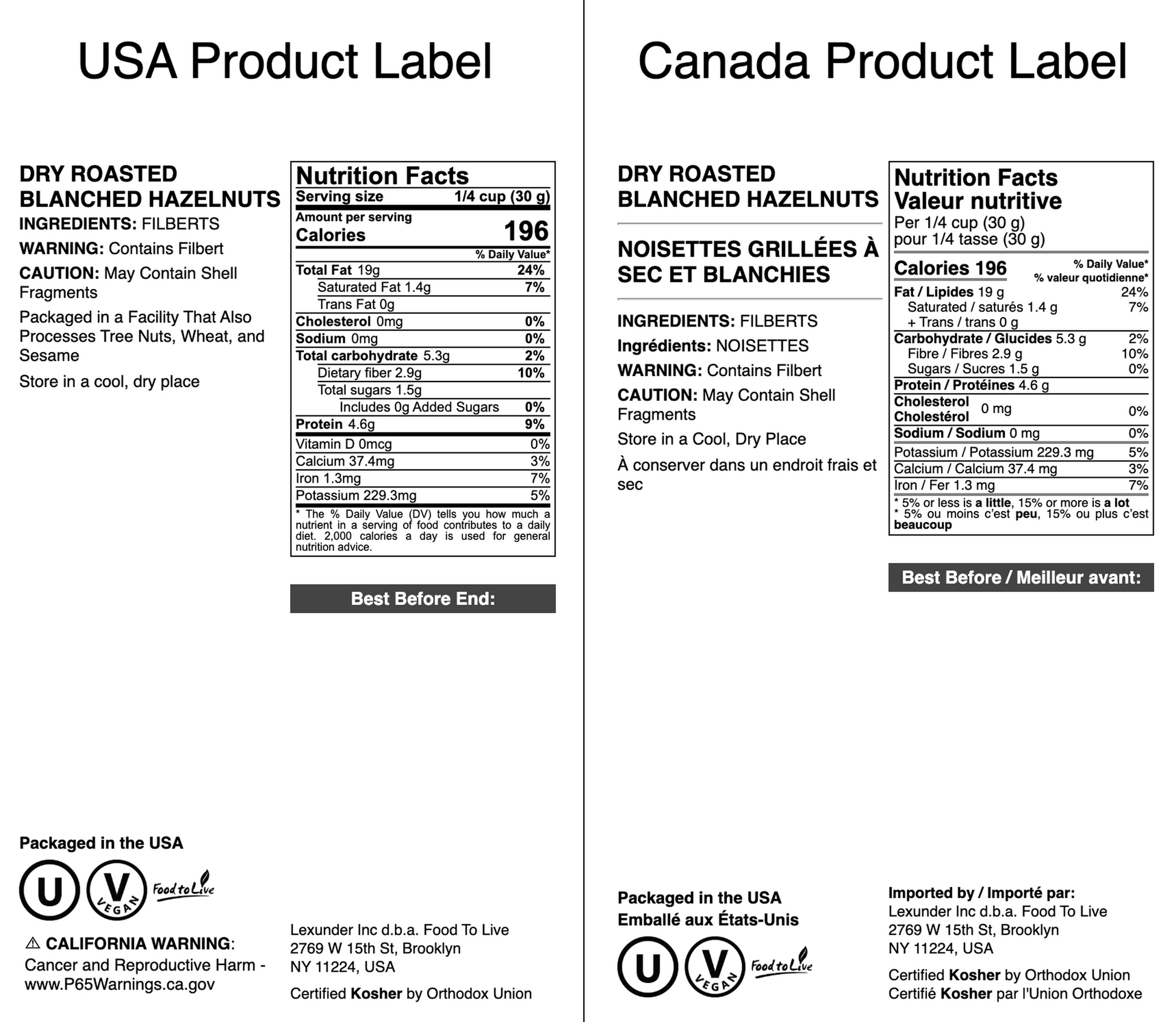 Dry Roasted Blanched Hazelnuts - by Food To Live