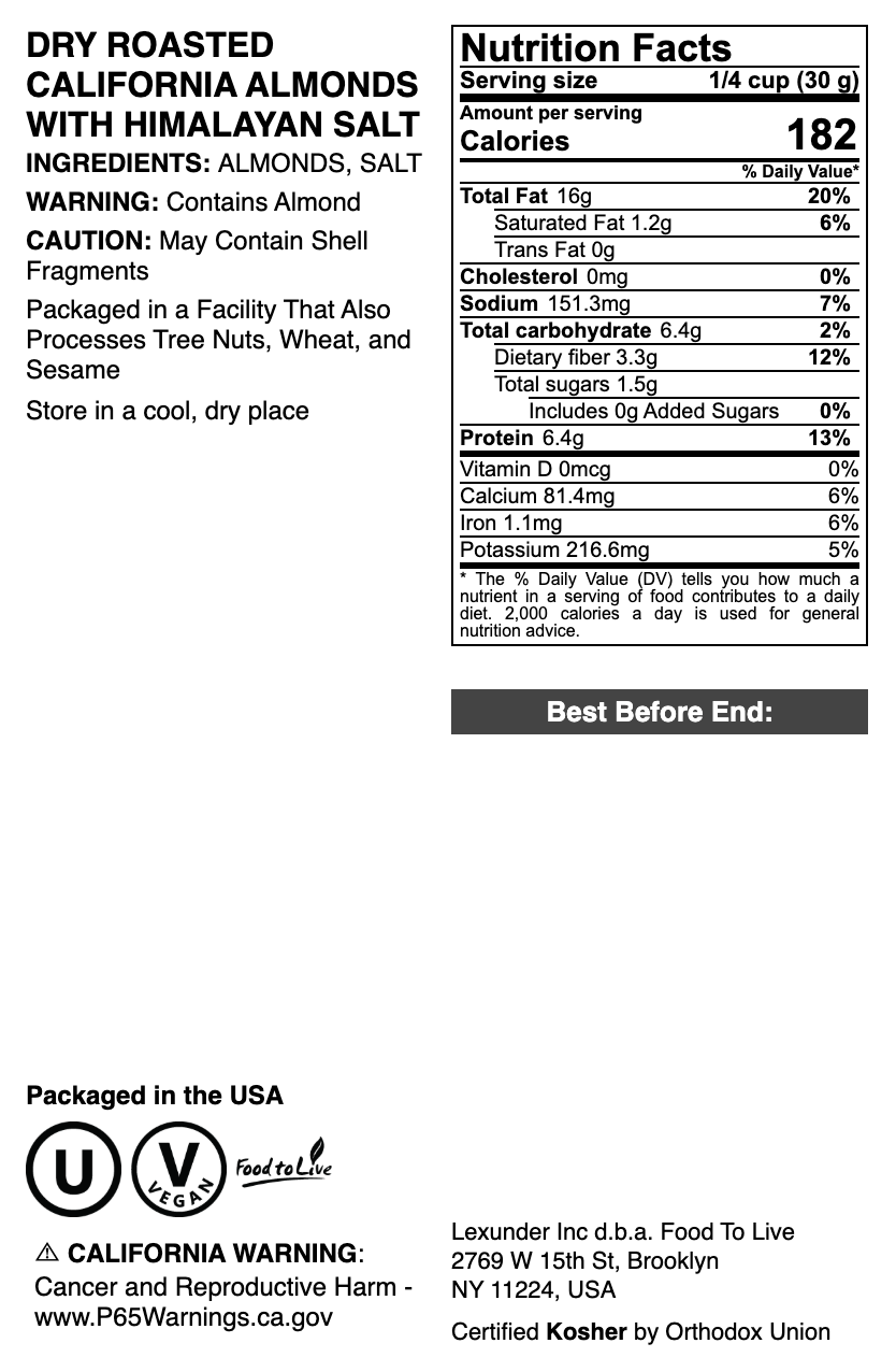 Dry Roasted California Almonds with Himalayan Salt - by Food To Live