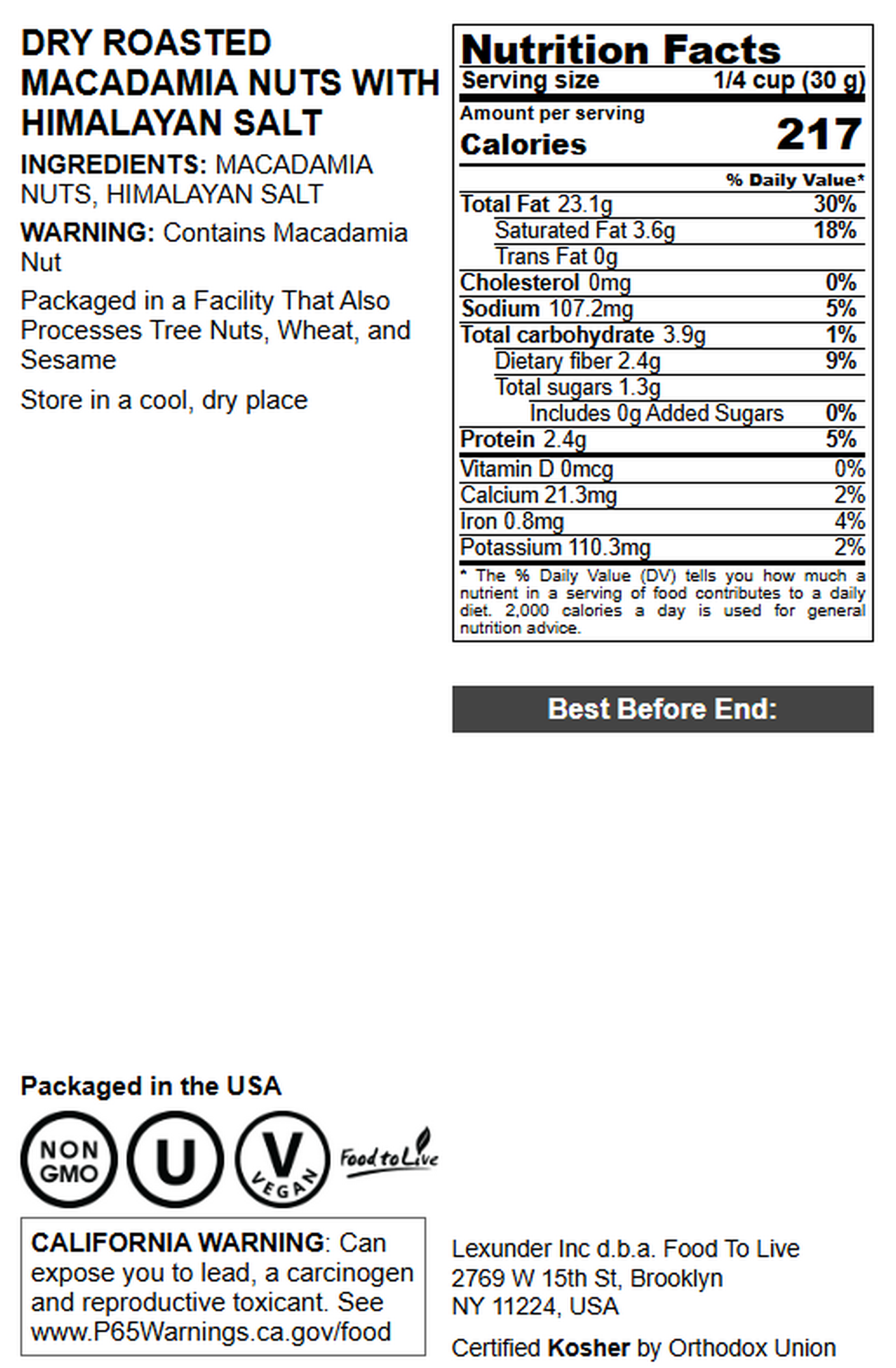 Dry Roasted Macadamia Nuts with Himalayan Salt - by Food To Live