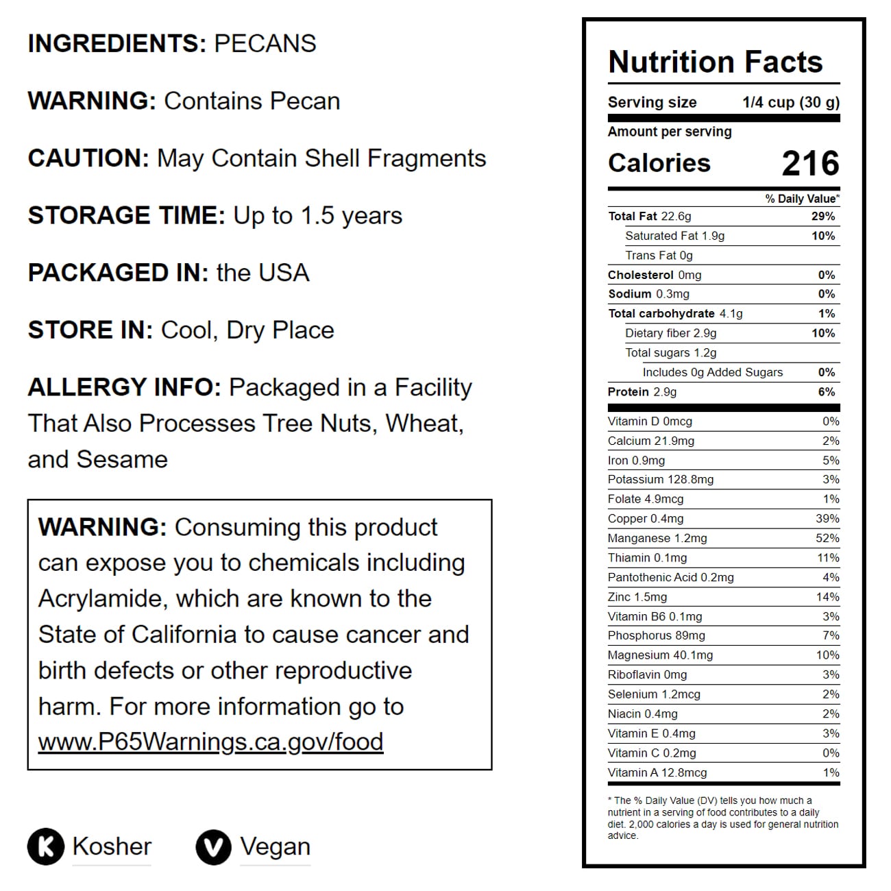 Want to save extra per pound? Check out prices for Roasted Pecans in bulk. Mind that, they can be stored for up to 1.5 years in a place protected from heat, humidity, and direct sunlight.