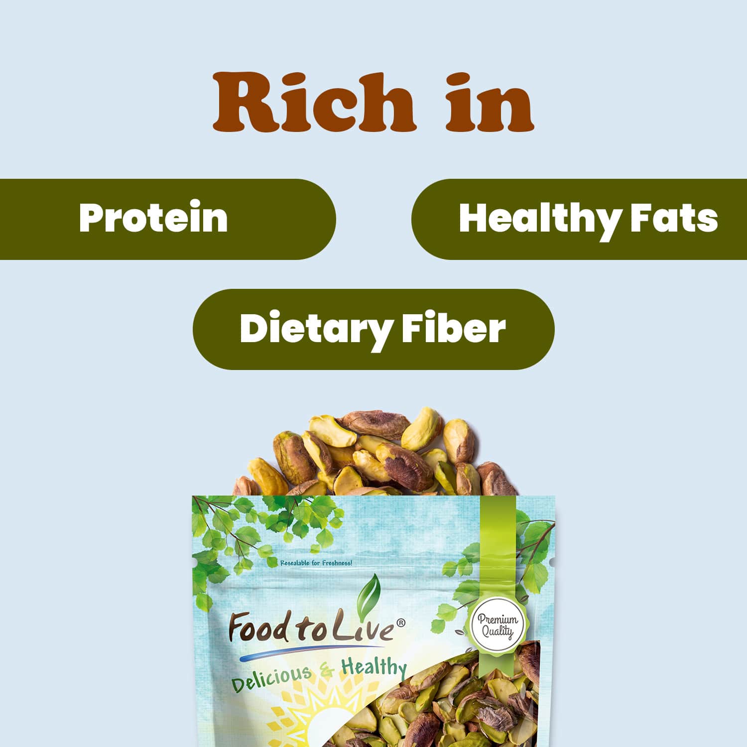 Dry Roasted Pistachio Halves can be added to trail mixes, sprinkled over the salads, ground into sauces, mixed into baked goodies, and used for crusting meat. Besides, you may add them to ice cream, muesli, pasta, and rice.