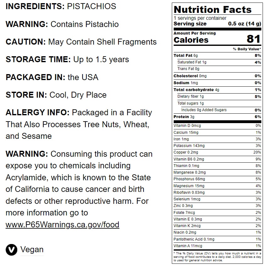 WARNING: Consuming this product can expose you to chemicals including Acrylamide which is known to the State of California to cause cancer and birth defects or other reproductive harm. For more information go to www.P65Warnings.ca.gov/food