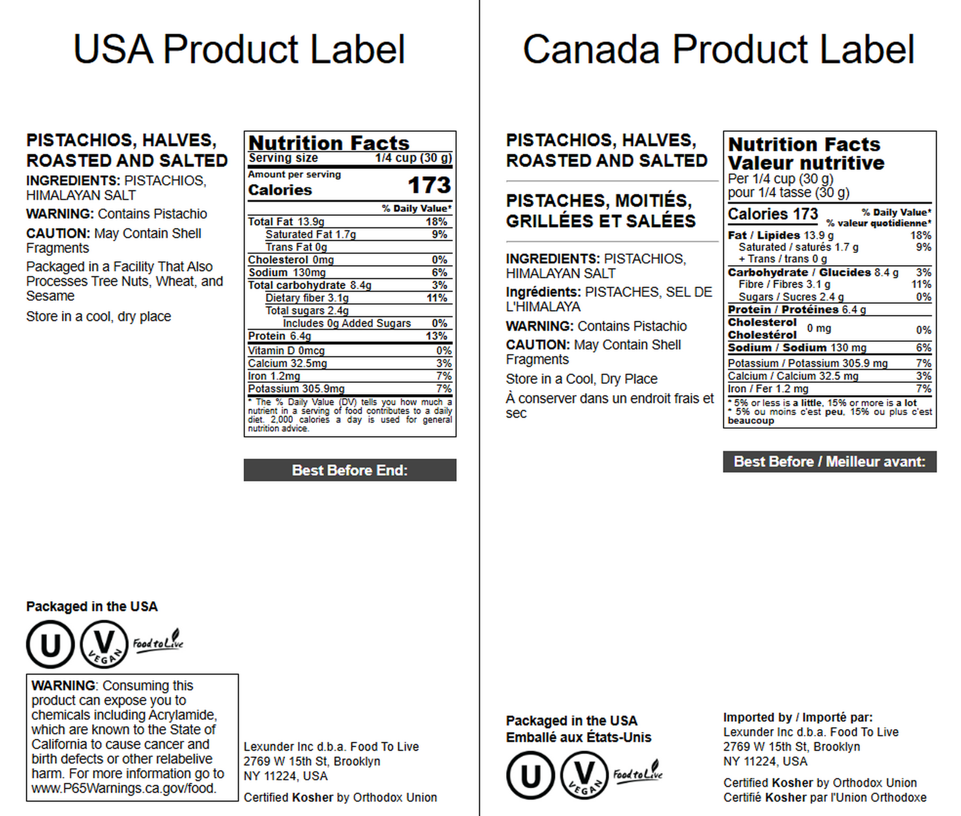 Dry Roasted Pistachio Halves with Himalayan Salt - by Food To Live