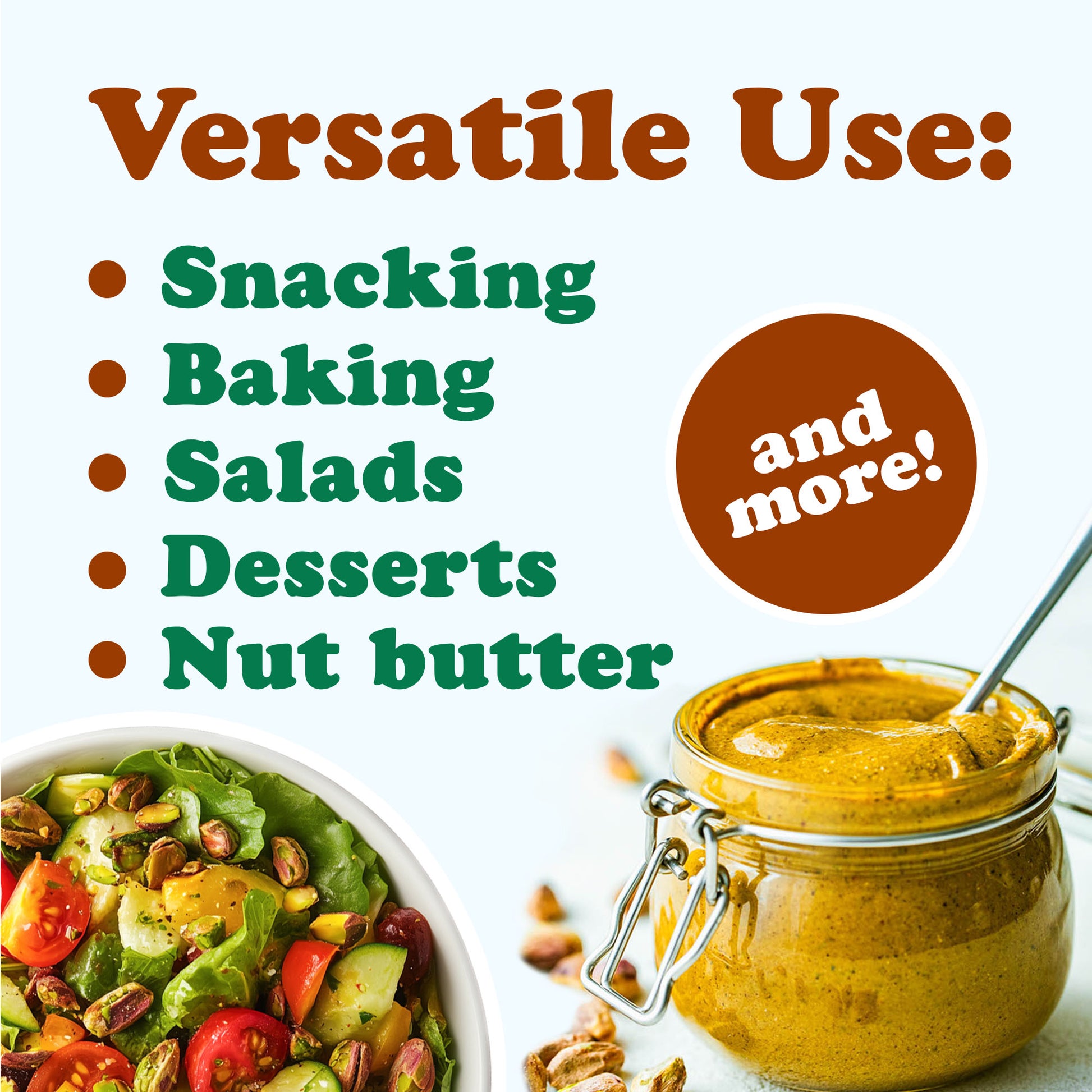 These ready-to-eat halves are perfect for snacking straight out of the bag or sprinkling over salads, rice bowls, and pasta. Add them to baked goods like muffins or cookies for extra crunch, or use them as a topping for oatmeal, yogurt, and even ice cream. They also work well in savory applications such as crusting meats, enhancing pilafs, or folding into dips and spreads.