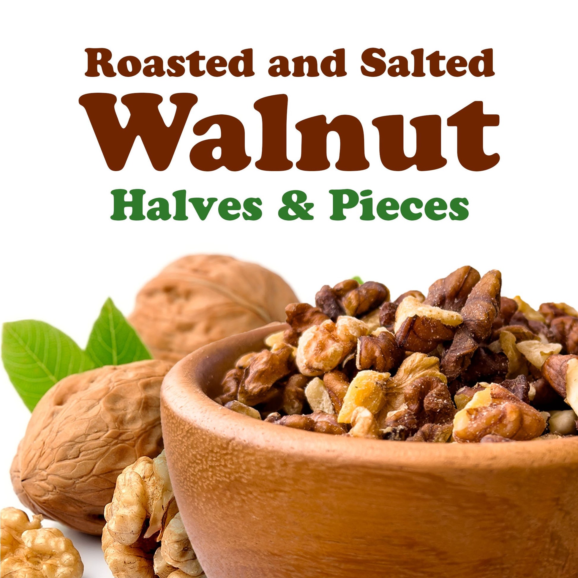Dry Roasted Walnut Halves and Pieces with Himalayan Salt