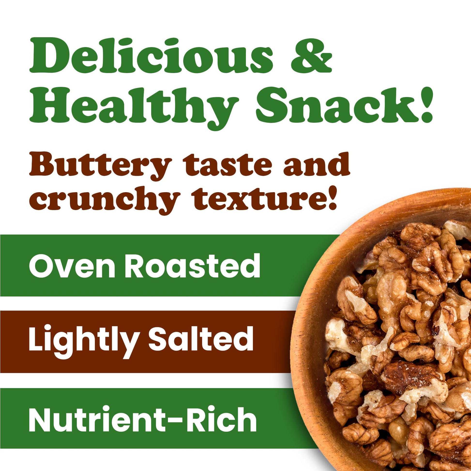 Enjoy these walnuts straight from the pack as a satisfying snack or combine them with dried fruits for a flavorful trail mix. They make an excellent topping for salads, yogurt, and oatmeal, adding crunch and depth. In baking, they are ideal for brownies, cookies, and cakes, while in savory dishes they enhance roasted vegetables, pilafs, and sauces. The light seasoning makes them versatile enough to use in both sweet and savory recipes.