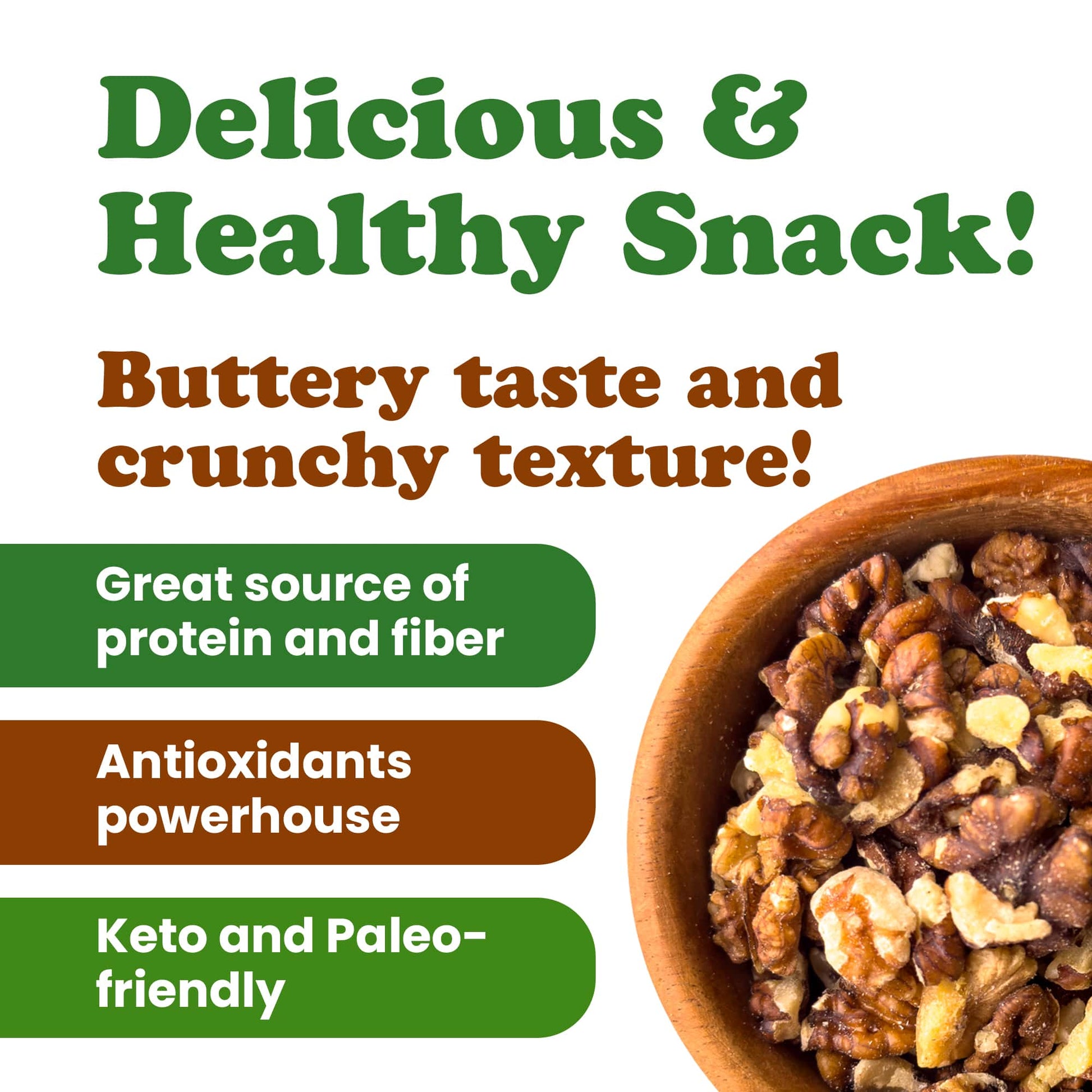Want to swap high-sodium potato chips for a healthier yet delicious snack? Food to Live's Dry Roasted Walnut Pieces are an excellent choice! They are gently roasted in small portions in an oven with no oil added, so there is no extra fat. These Walnut Pieces are of Premium Quality, Unsalted, Vegan, Kosher and Paleo- friendly.