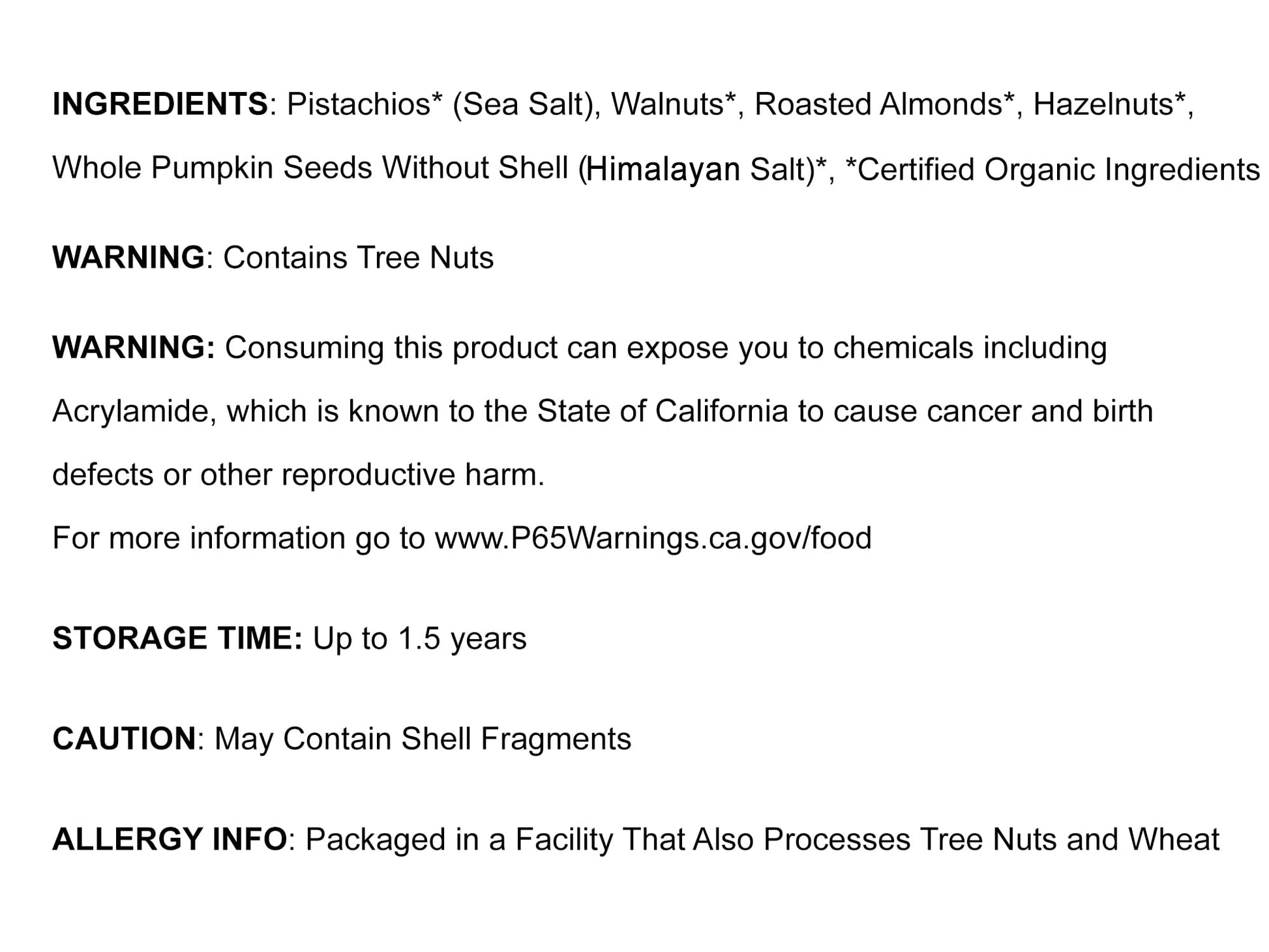 For your comfort, we've packed all ingredients into 8oz resealable bags. Store Organic Holiday Gift Set ingredients tightly sealed and in a dry, cool place. To extend the shelf life of nuts, you can keep them in the fridge.