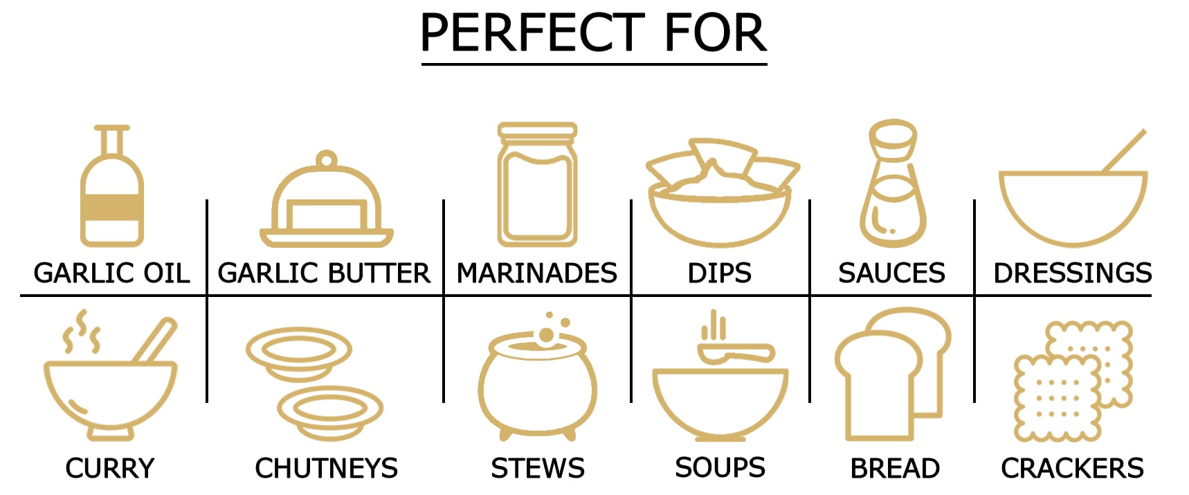 The oils are often intensified with powdered garlic and used as a flavoring for bread, vegetables, and pasta.