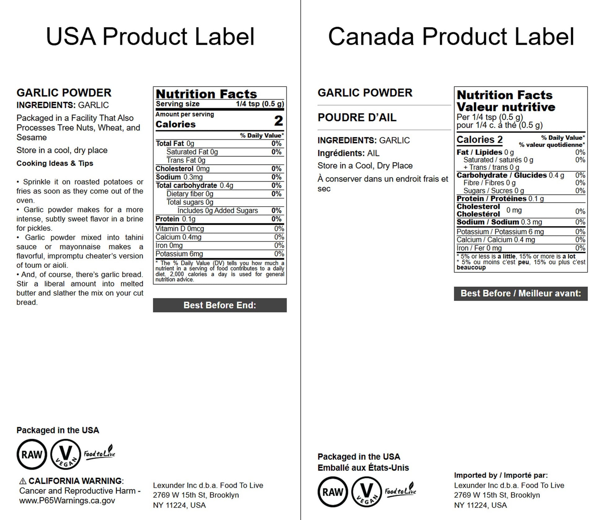 Dehydrated pulverized fresh garlic makes raw garlic powder. Note that granulated garlic is similar to this product. However, dehydrated cloves are ground to a coarse meal instead of fine powder.