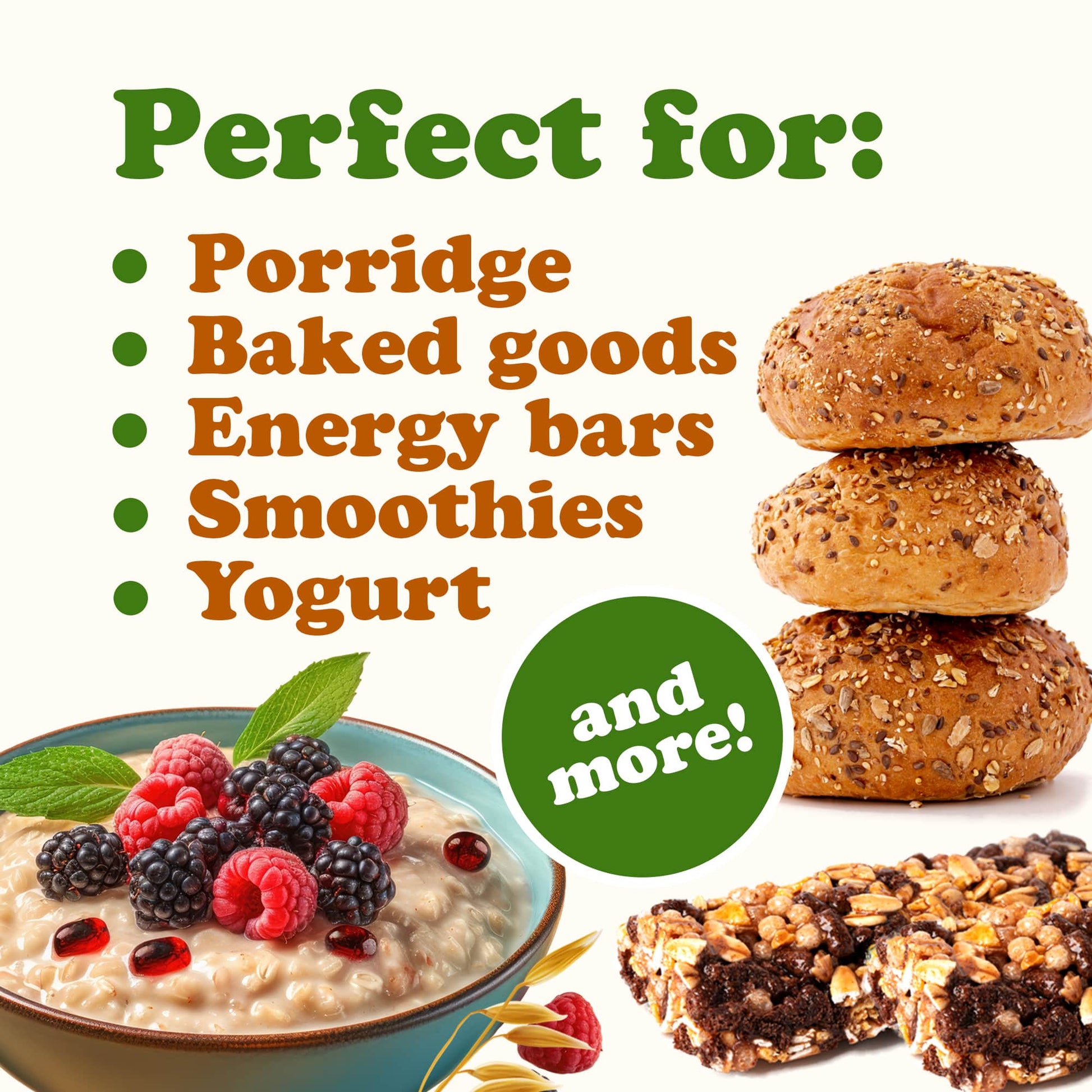 ✔️VERSATILE AND EASY TO USE: Ideal for Porridge, Smoothies, Baking, and more. Sprinkle on Yogurt or use it in Energy Bars for a nutritious snack.