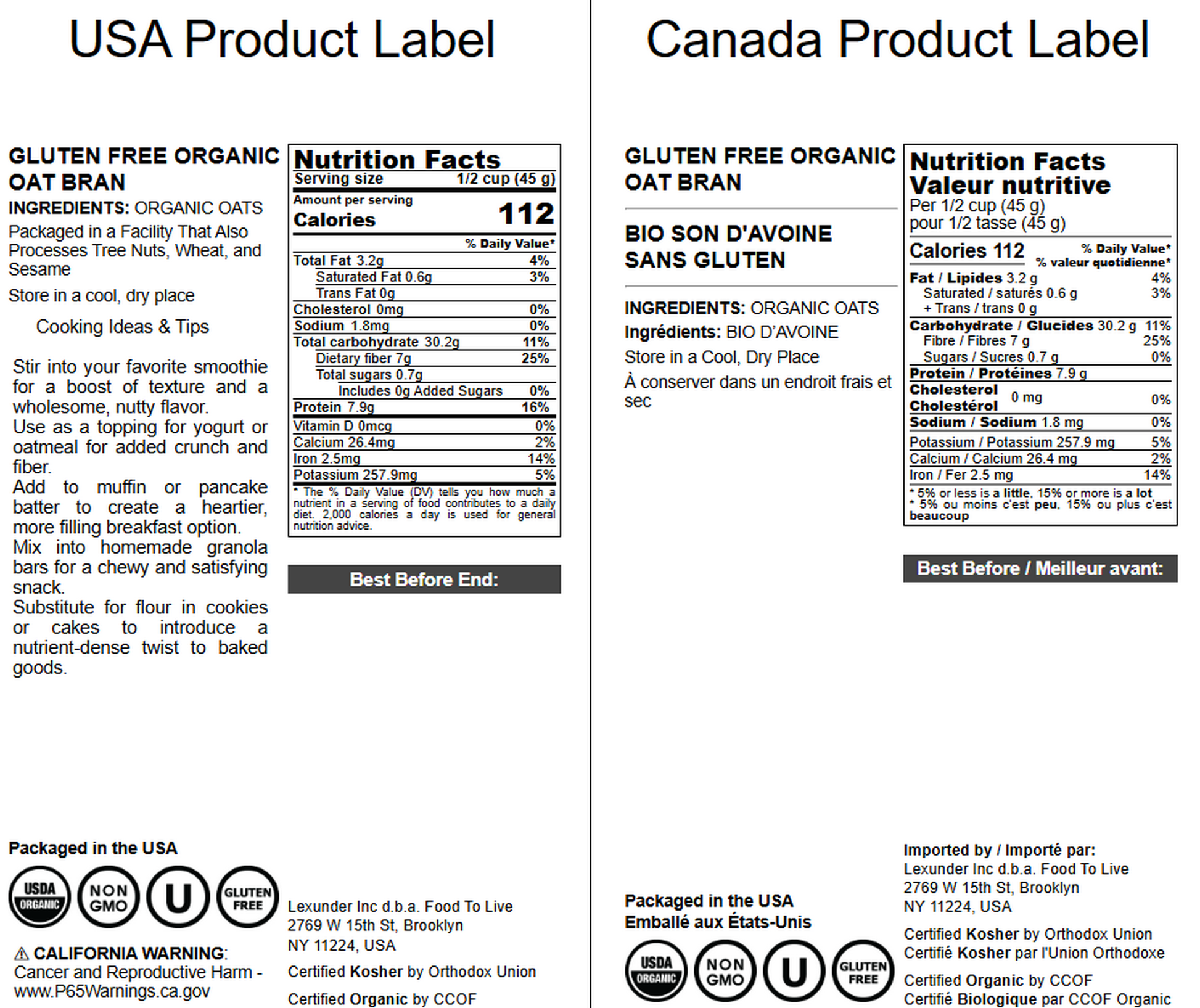 ✔️LONG SHELF LIFE: Store Gluten Free Organic Oat Bran from Food to Live for up to 2 years while retaining freshness and nutrition.