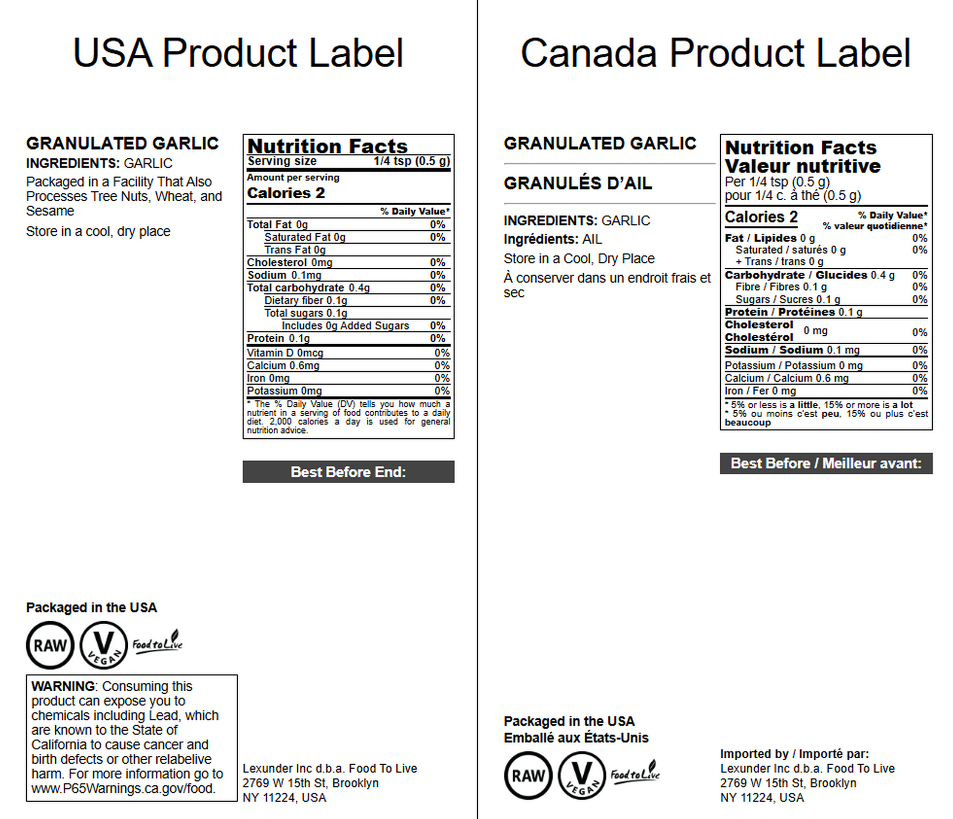 If garlic is an essential ingredient in your cooking, you're in the right place. Food to Live's Granulated Garlic is derived from peeled and dried-out fresh garlic cloves. Don't confuse granulated, minced garlic, and garlic powder; the main difference between the three is in their texture. While Minced Garlic is chopped into bigger particles, Garlic Granules resemble the texture of cornmeal, and Garlic Powder is of a super-fine consistency, very similar to flour.