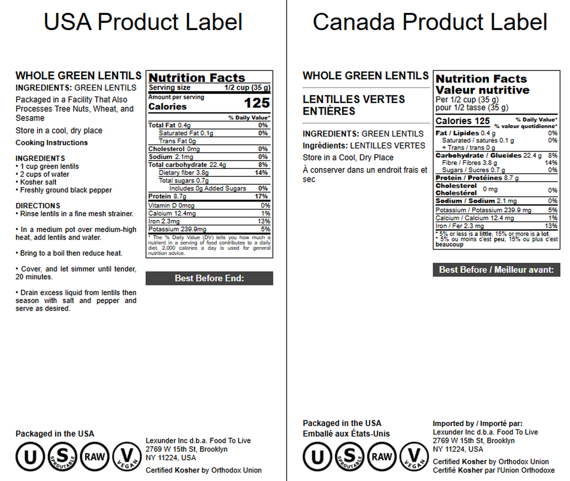 Green Lentil Whole — Non-GMO Verified, Kosher, Bulk - by Food to Live