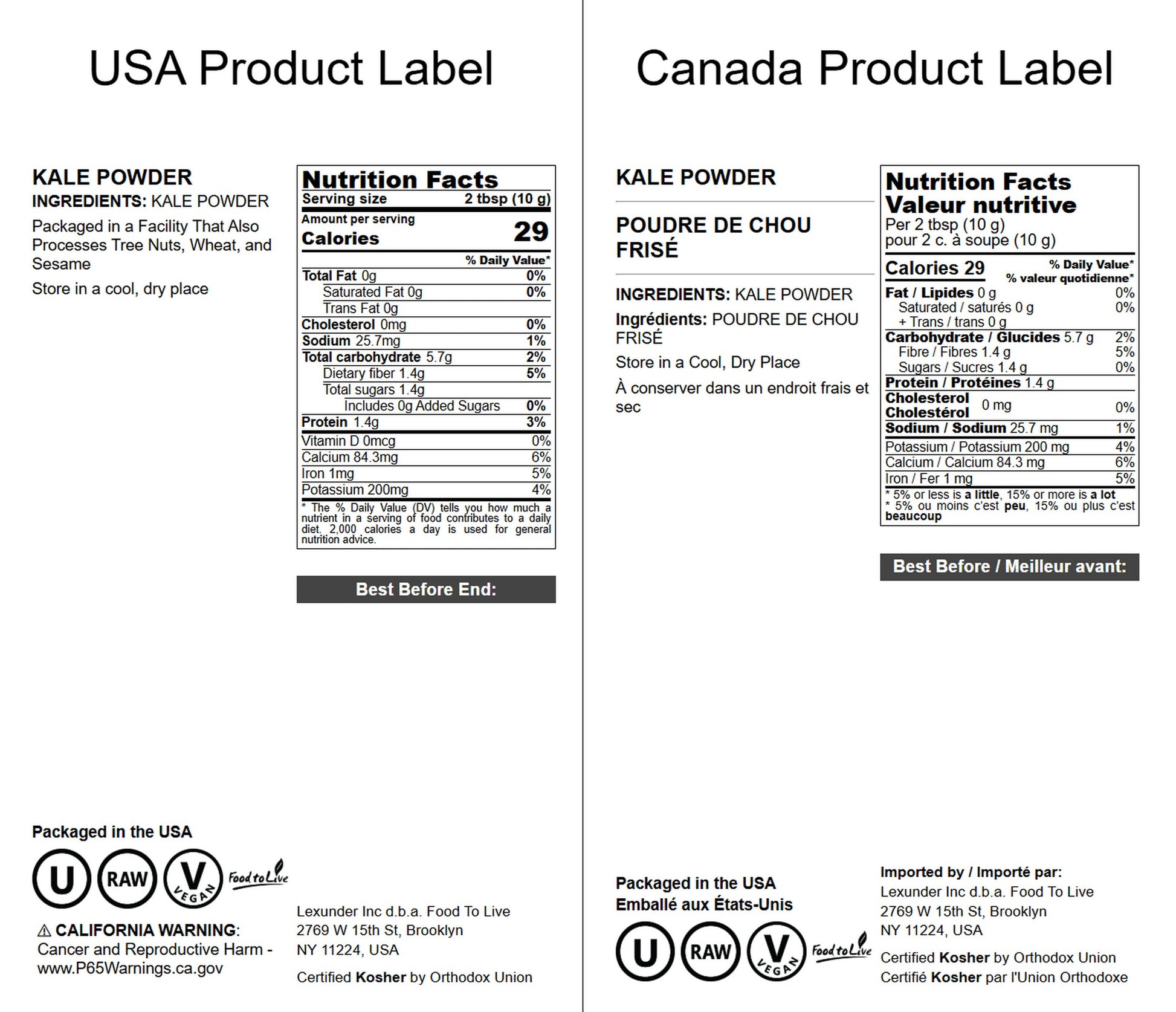 Kale Powder, X Pounds - Made from Raw Dried Whole Leaves, Kosher, Vegan, Bulk, Great for Baking, Juices, Smoothies, Shakes, Теа, and Instant Breakfast Drinks. Good Source of Vitamin C - by Food to Live