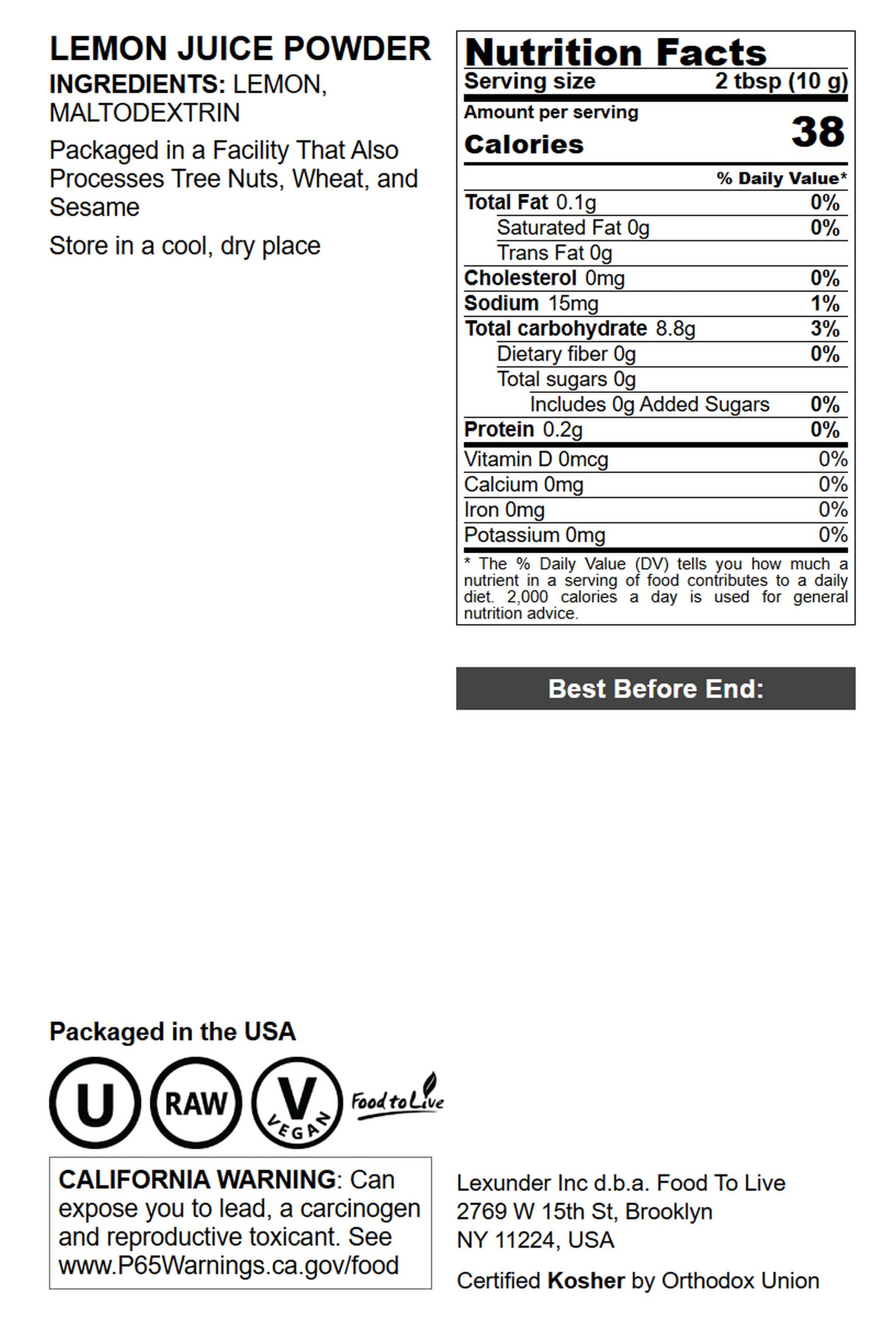 Lemon Juice Powder- by Food To Live
