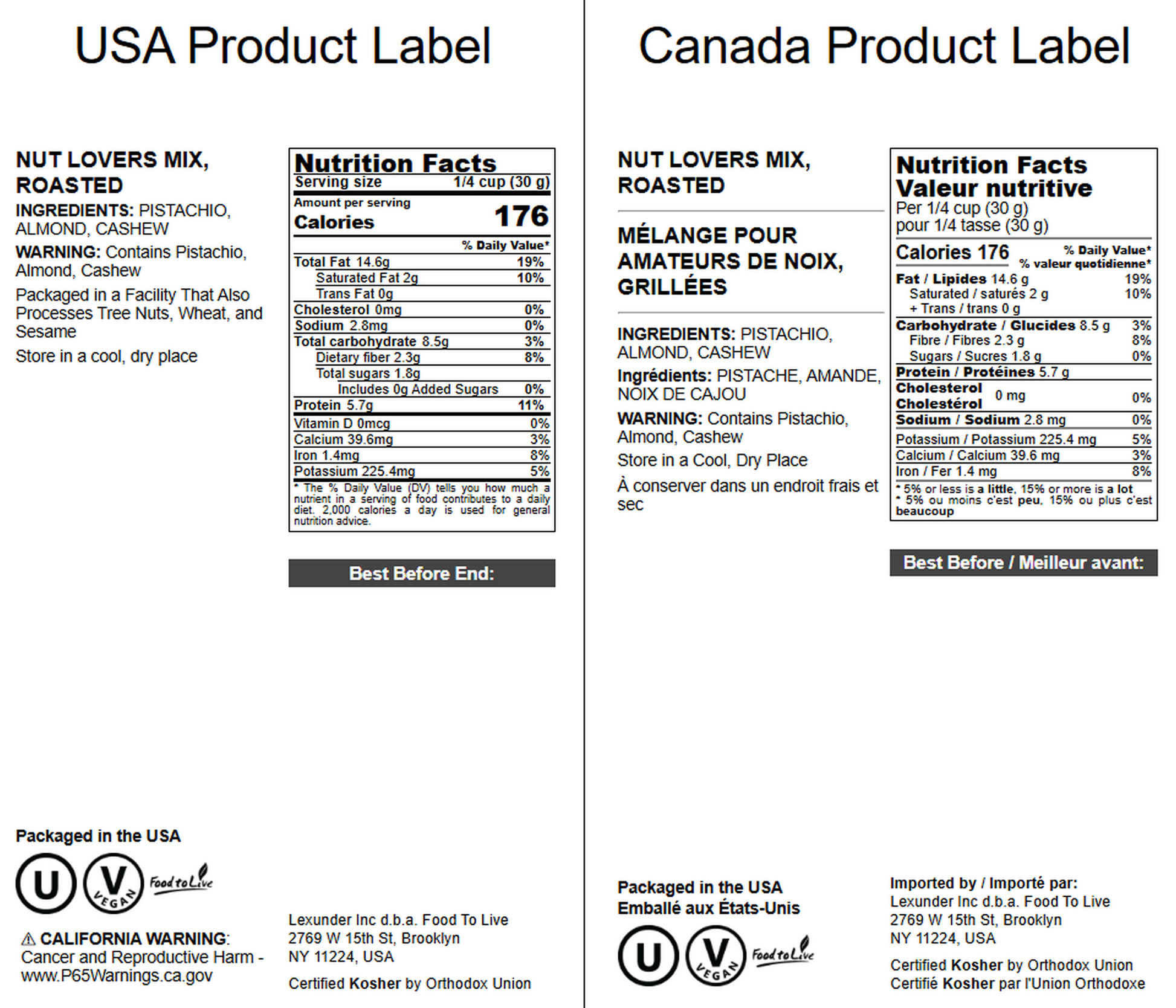 Nut Lovers Mix, Roasted – Vegan, Kosher, Bulk – by Food to Live