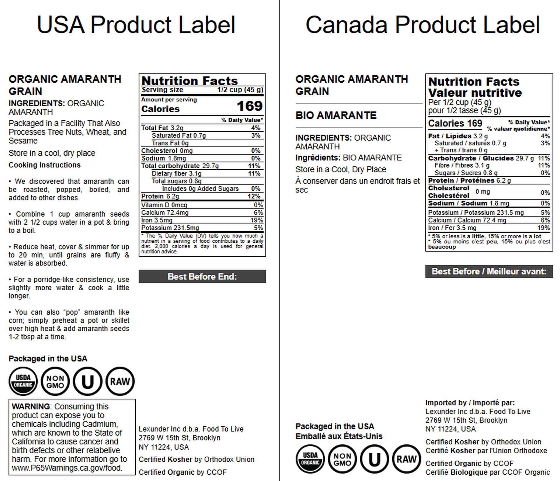 - - ORGANIC and NON-GMO: Amaranth Seeds by Food to Live are Organic and Non-GMO. Moreover, they are Kosher, Raw, and suitable for vegans and vegetarians.