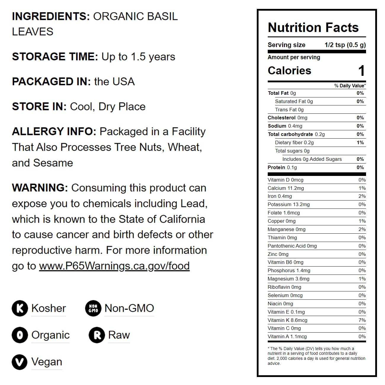 - NON-GMO AND KOSHER: These Organic Basil Leaves from Food to Live are Non-GMO and certified Kosher for quality assurance.