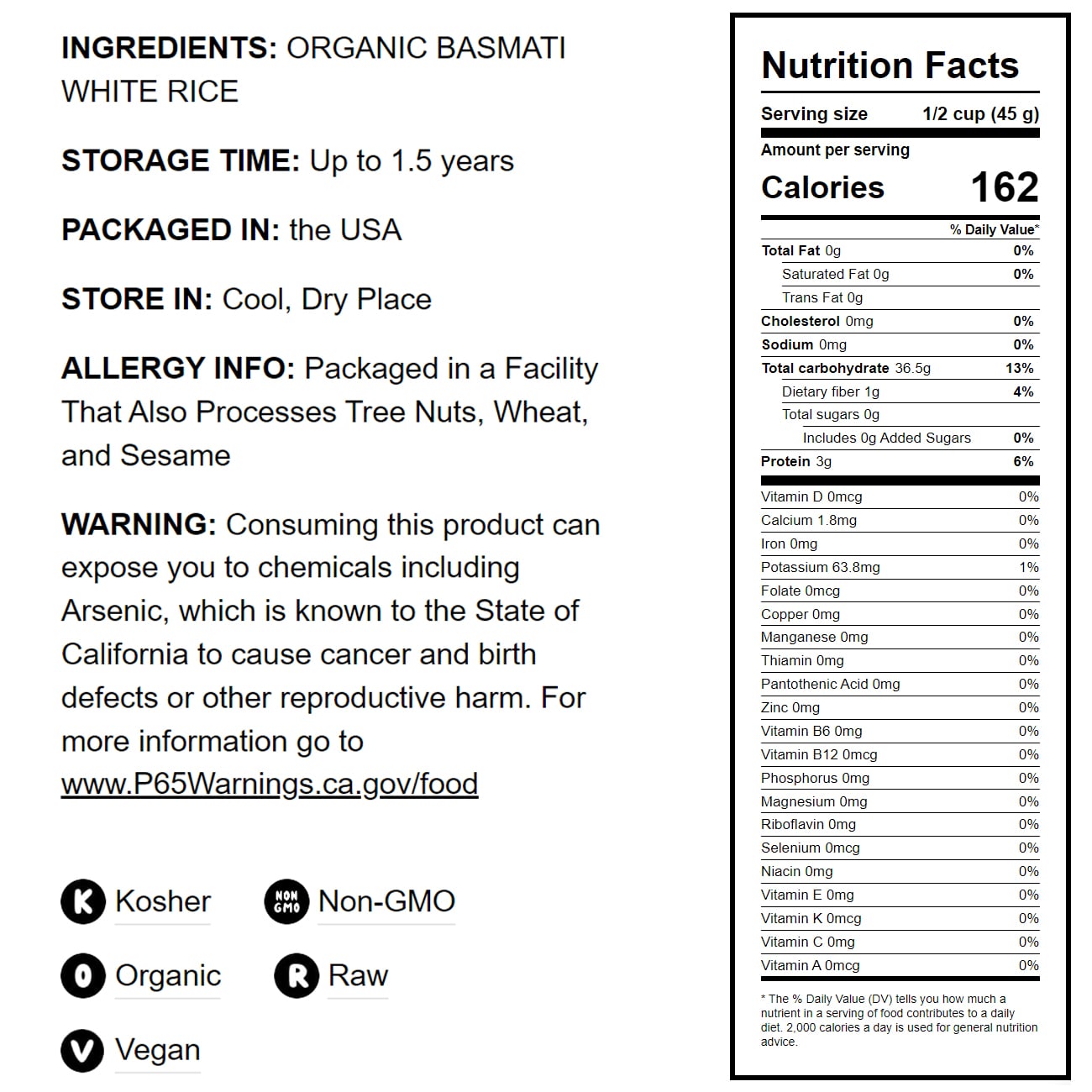 WARNING: Consuming this product can expose you to chemicals including Arsenic (inorganic arsenic compounds) which is known to the State of California to cause cancer. For more information go to www.P65Warnings.ca.gov/food