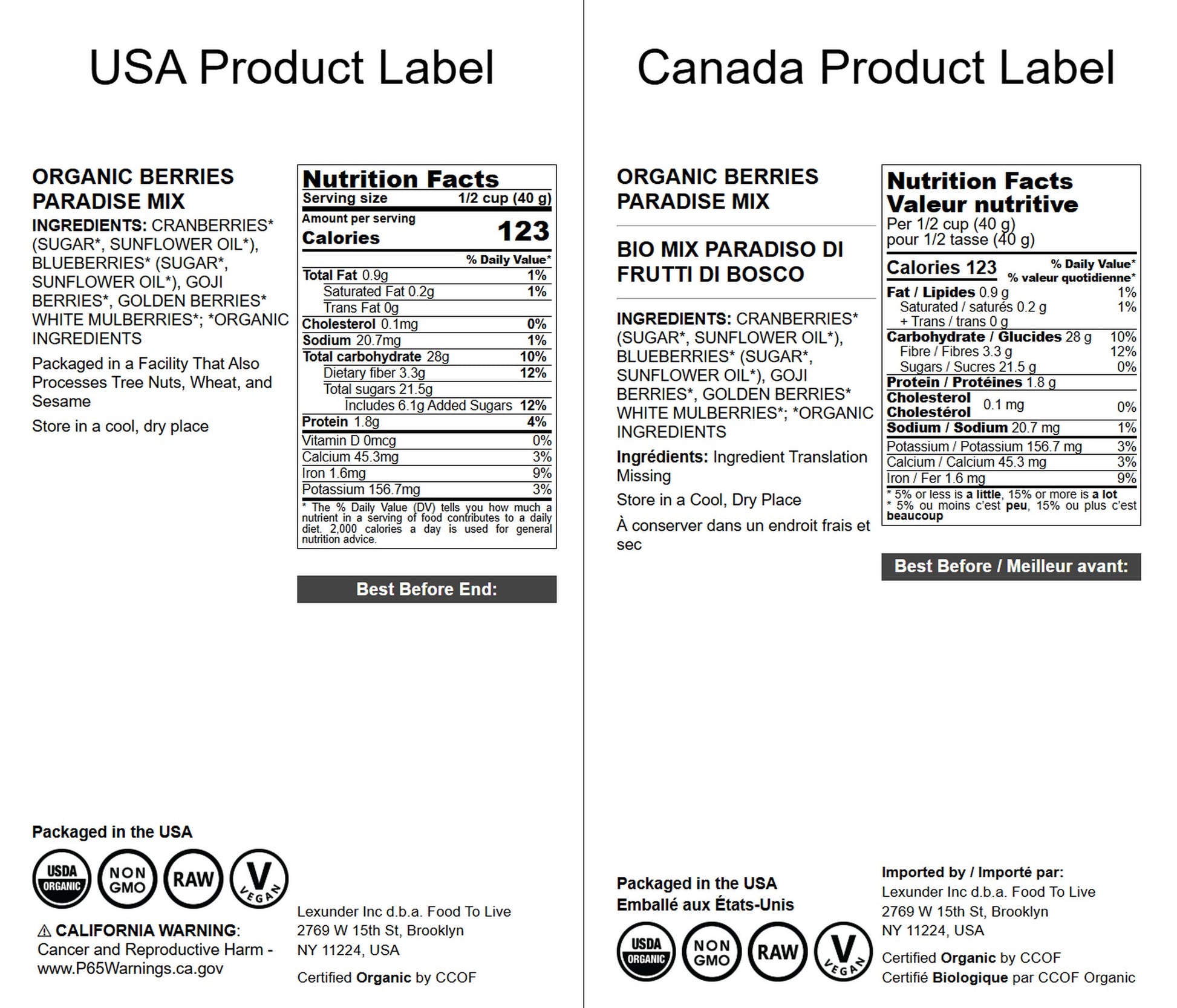 ✔️ ORGANIC, NON-GMO & VEGAN, MADE IN USA: Berries Paradise Mix by Food to Live contains only Organic, 100% Raw and Vegan ingredients.