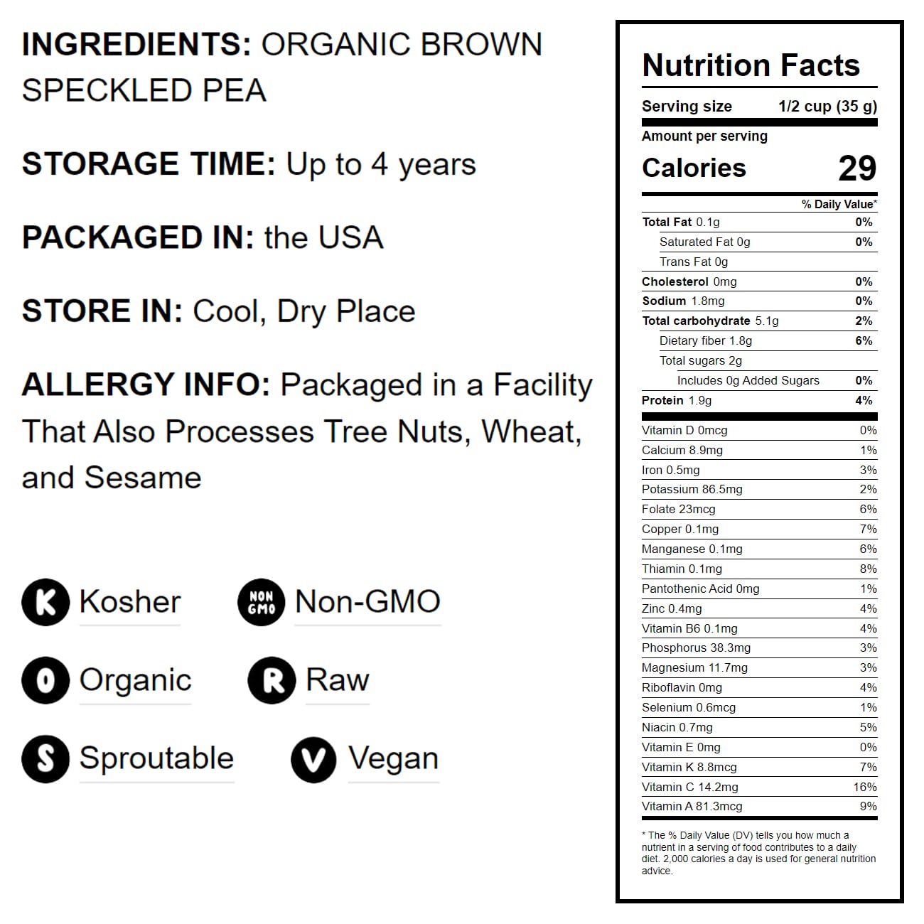 Sprouting Organic Brown Peas is a simple procedure that everyone can handle.