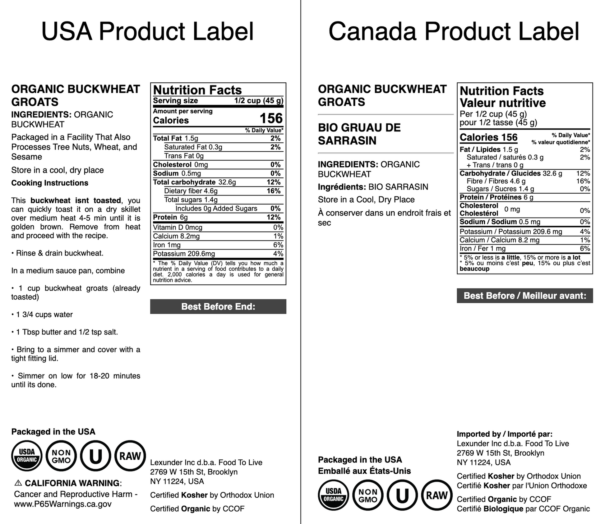Organic Buckwheat Groats - by Food To Live