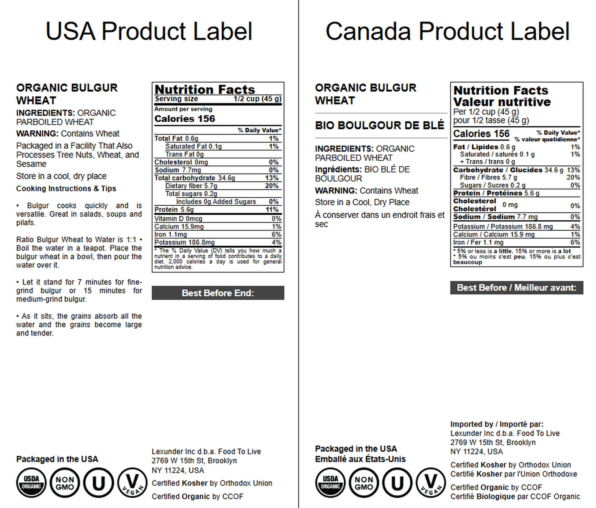 Organic Bulgur Wheat - by Food To Live