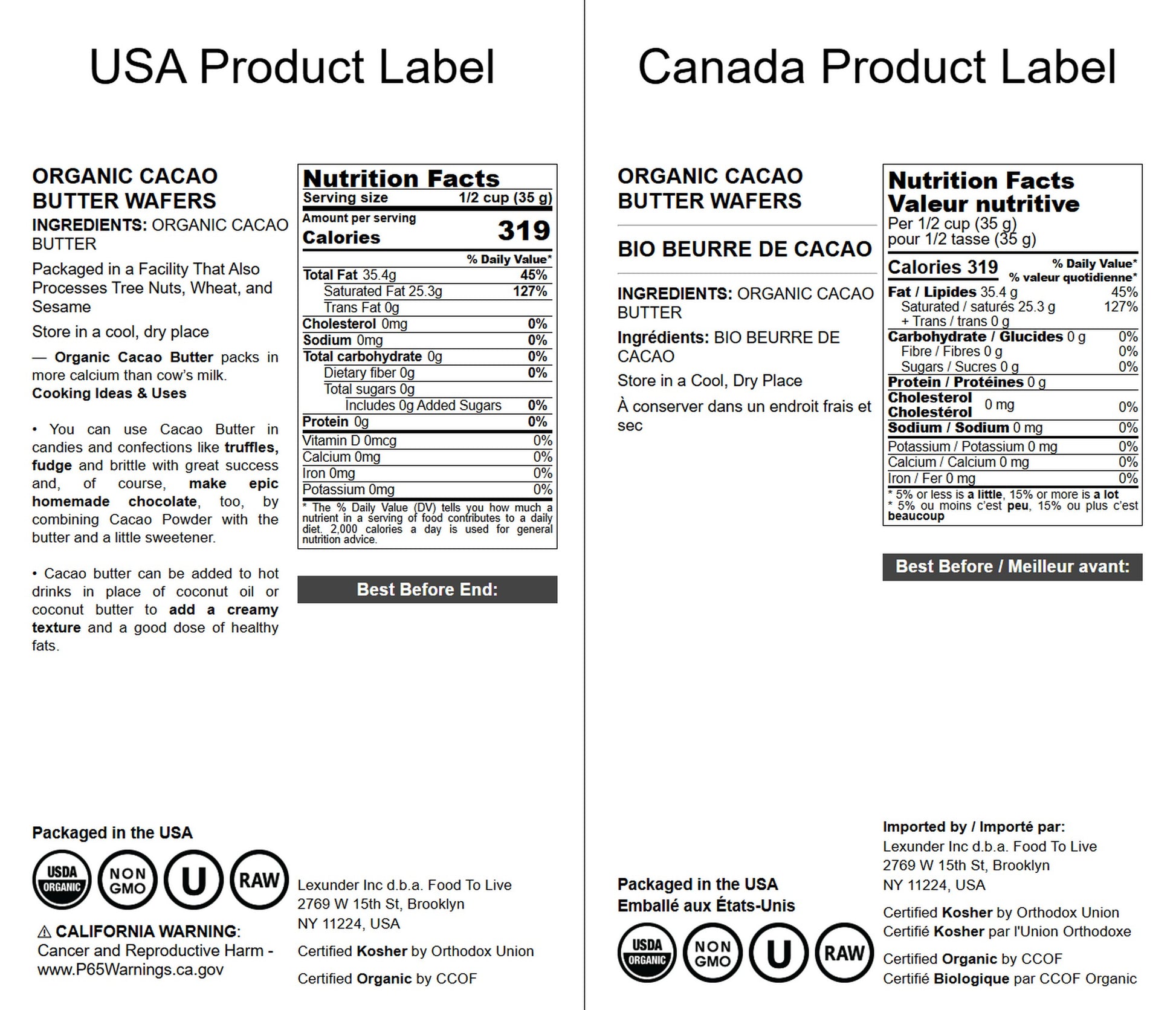 Organic Cacao Butter Wafers – Non-GMO, Raw, Pure, Unfiltered, Unrefined, Keto, Vegan, Bulk, Made Using a Cold Pressing – by Food to Live