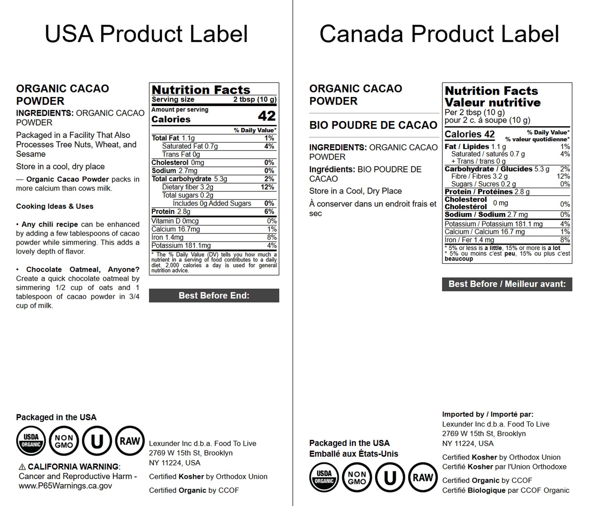 - ✔️ CERTIFIED ORGANIC PRODUCT: Food To Live Cacao Powder is organic, unsweetened, and 100% safe.
