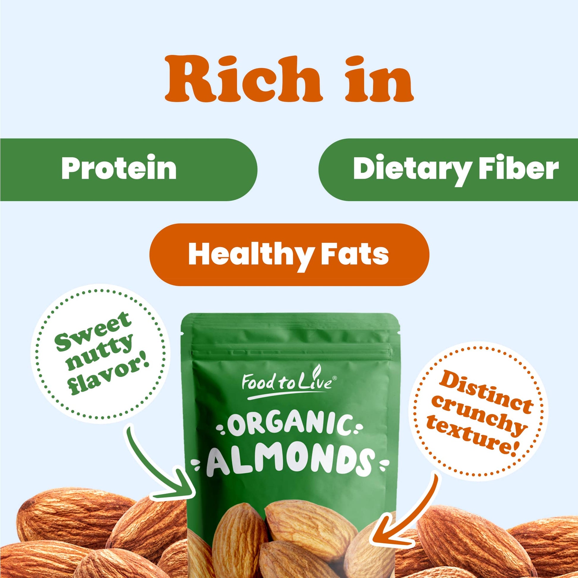 Organic Almonds come in a variety of forms, such as sliced, blanched, and even ground into flour. The greatest thing about these raw Organic almonds from Food To Live is that they are whole, so you can turn them into any form that your recipe calls for.