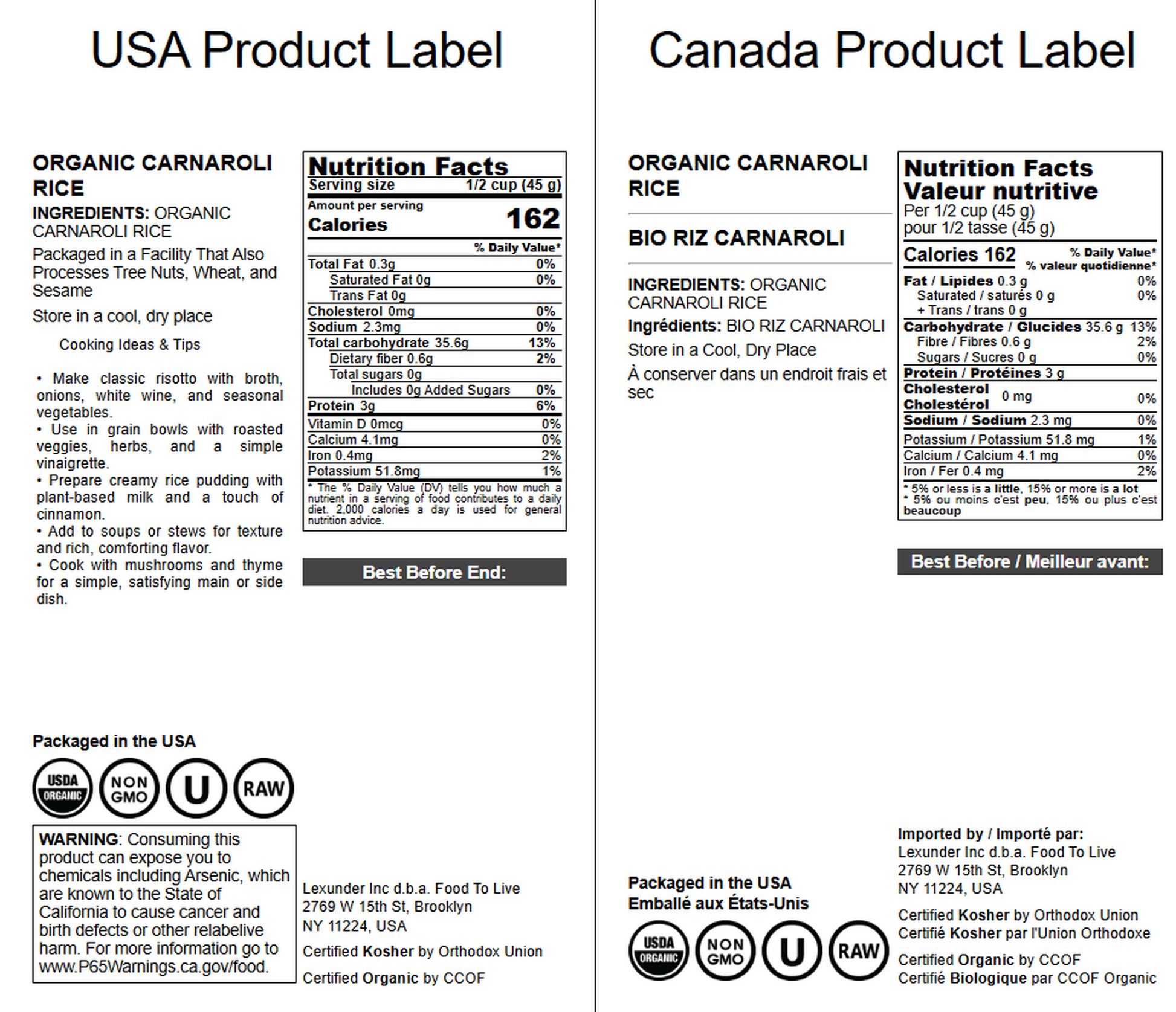 Organic Carnaroli Rice provides a source of energy-rich complex carbohydrates and plant-based protein. It contains essential minerals such as iron and magnesium, along with trace amounts of B vitamins. Being naturally gluten-free, it fits into a variety of balanced diets. Its starch content contributes to its creamy texture when cooked, while the grain also offers dietary fiber when minimally processed.