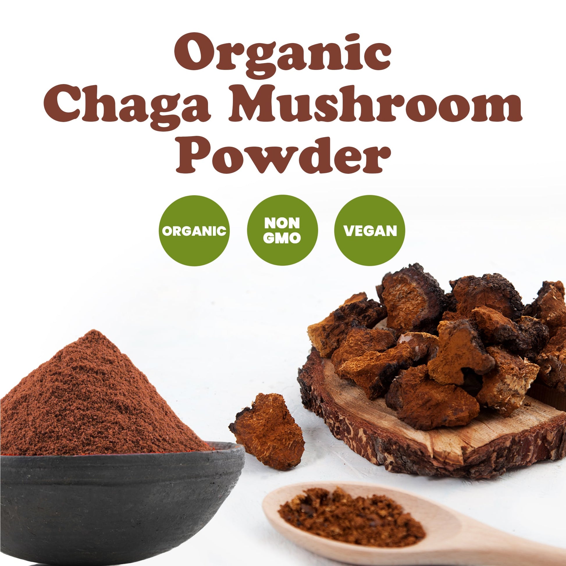 Organic Chaga Mushroom Powder – All Natural Vegan Superfood for Immunity and Holistic Wellness. Rich in Antioxidants and Nutrient-Packed. Non-GMO. 100% Pure. Great for Smoothies. Kosher