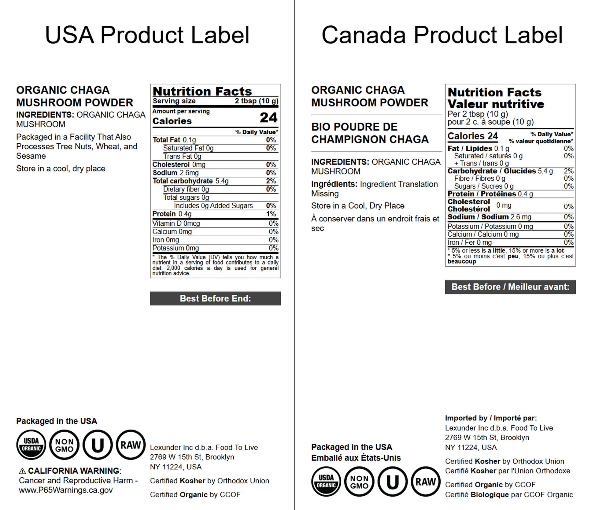 Organic Chaga Mushroom is a mushroom that grows in cold climates, mostly on birch trees, and is renowned for its rich nutritional profile. Food to Live’s best Organic Chaga Mushroom Powder is crafted by gently dehydrating and grinding the Chaga Mushrooms. This powder is Organic, Non-GMO, Keto, Vegan, and 100% Pure, containing NO additives.
