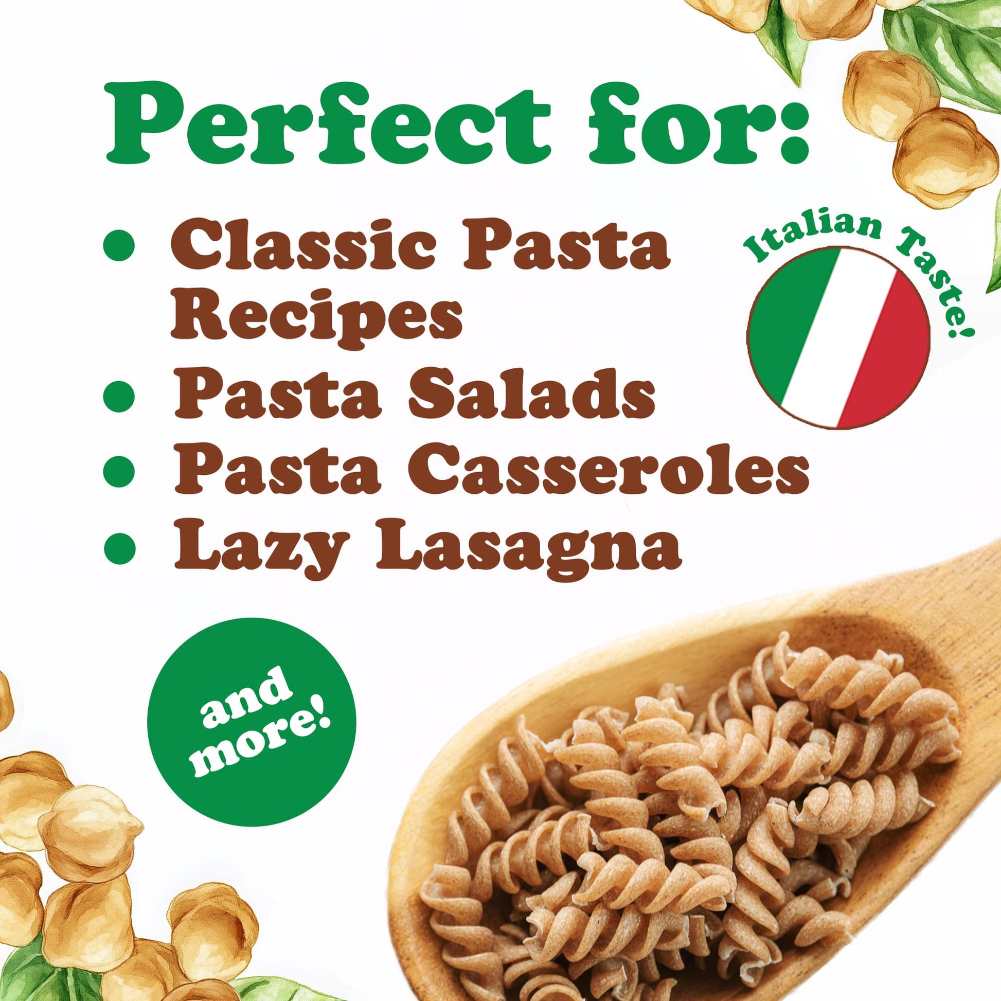 Furthermore, Organic Italian Chickpea Pasta Fusilli contains potent antioxidants, Vitamins B and D, and essential minerals such as Folate, Iron, Magnesium, Potassium, and Calcium. Organic Chickpea Pasta carbs are notably lower than those in traditional wheat pasta, making it a good choice for those on a low-carb diet.