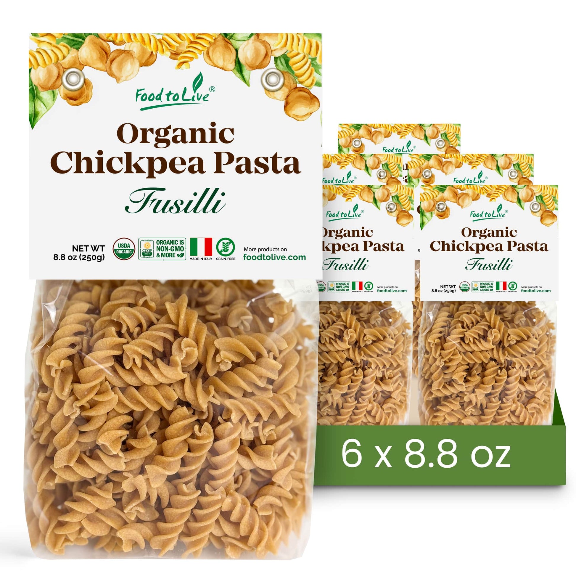 You love pasta but wish it had less carbs and more nutrients? You're in luck! Organic Chickpea Pasta by Food to Live is an excellent choice for a wholesome diet. As a true Italian product, this Organic Chickpea Fusilli Pasta ingredients are simply Garbanzo beans and water, with preservatives added.