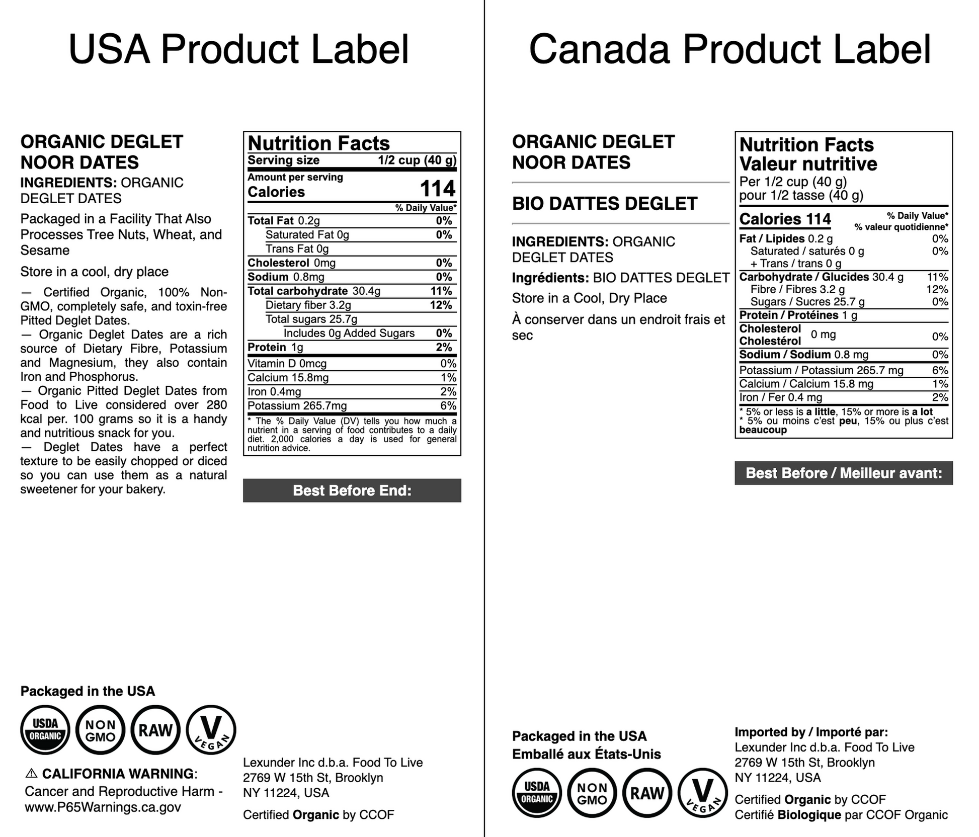 Organic Deglet Noor Dates - by Food To Live