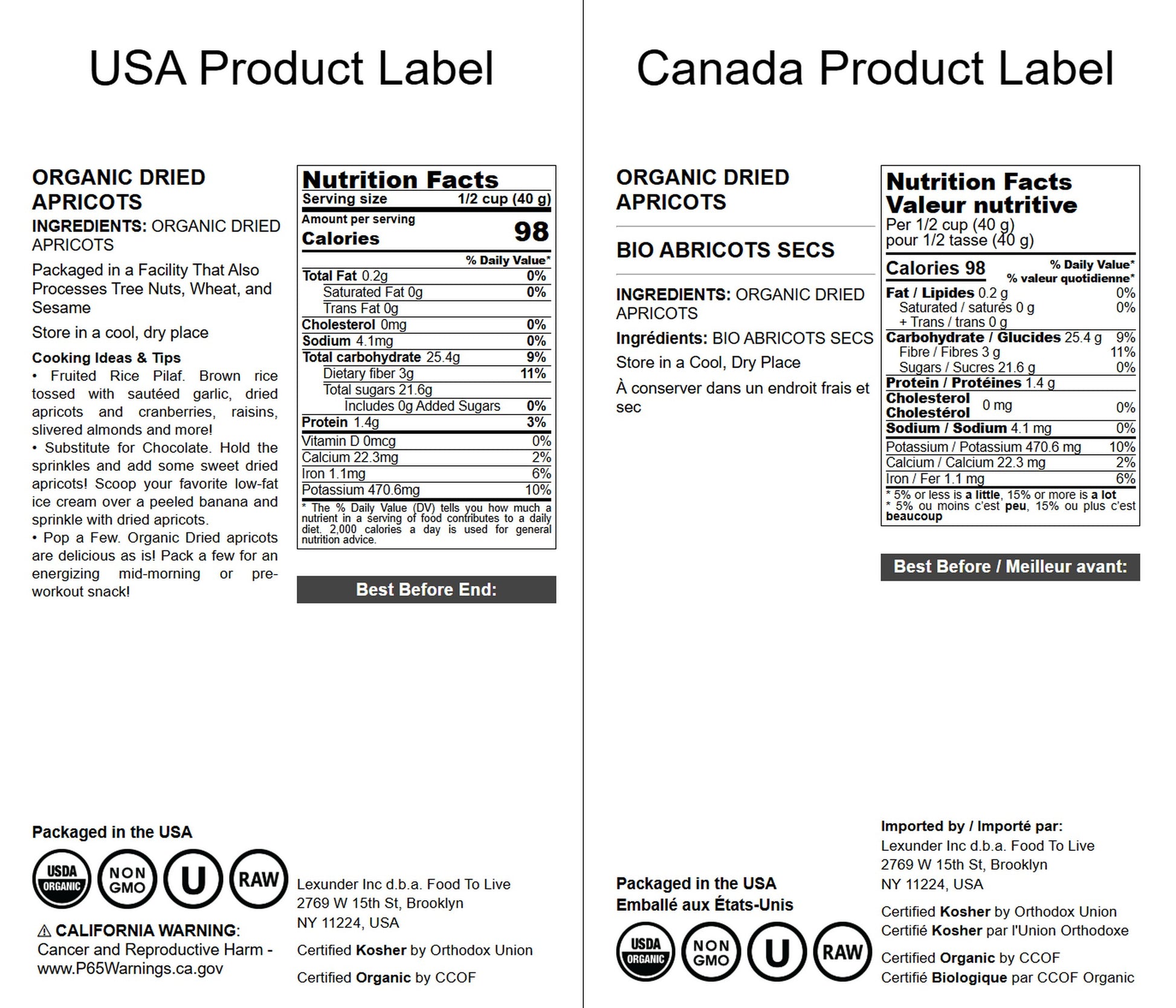 Organic Dried Apricots - Non-GMO, Kosher, Unsulfured, Raw, Vegan, Bulk - by Food to Live