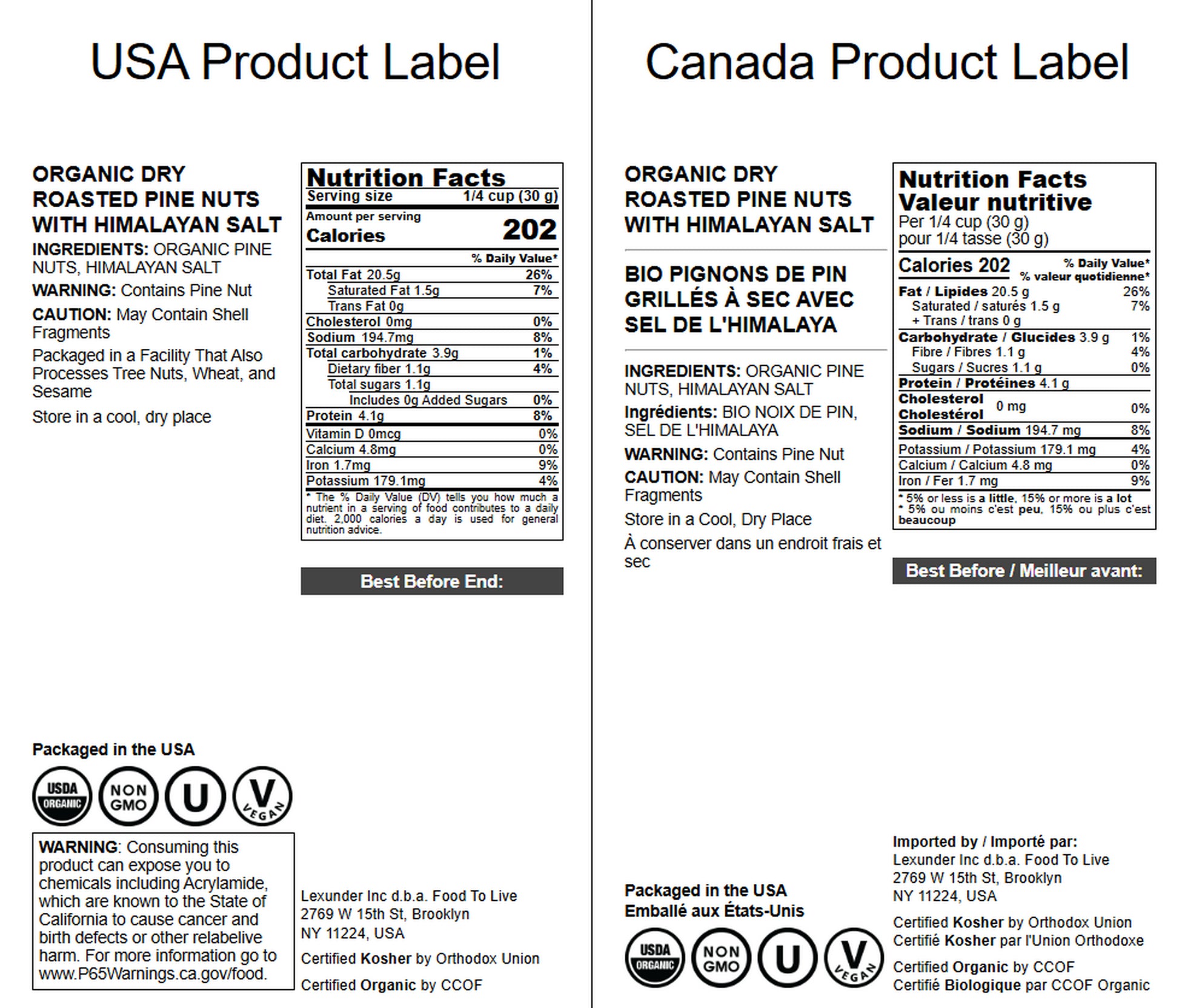 Organic Dry Roasted Pine Nuts with Himalayan Salt - by Food to Live