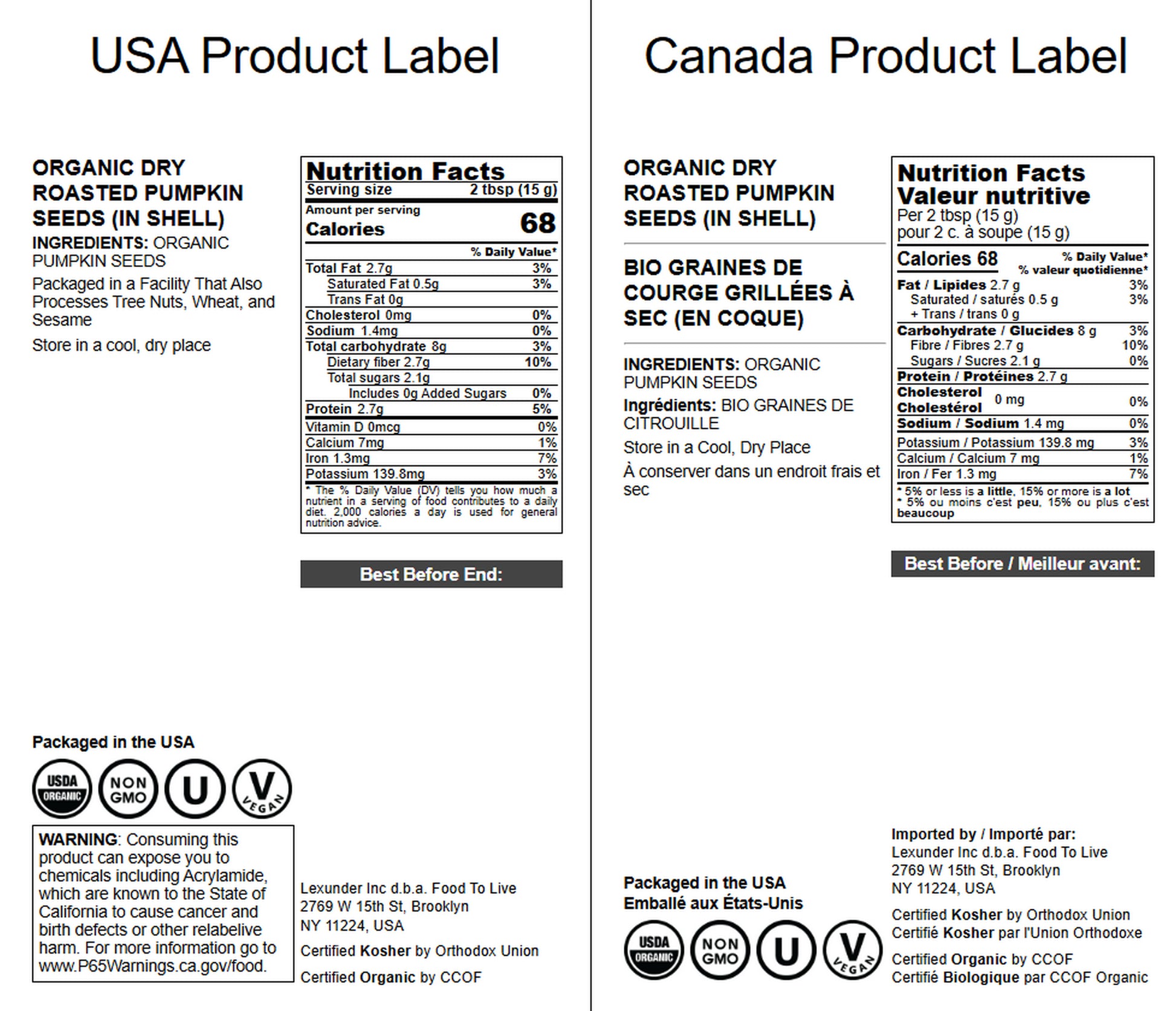 Organic Dry Roasted Pumpkin Seeds (in Shell) – by Food to Live