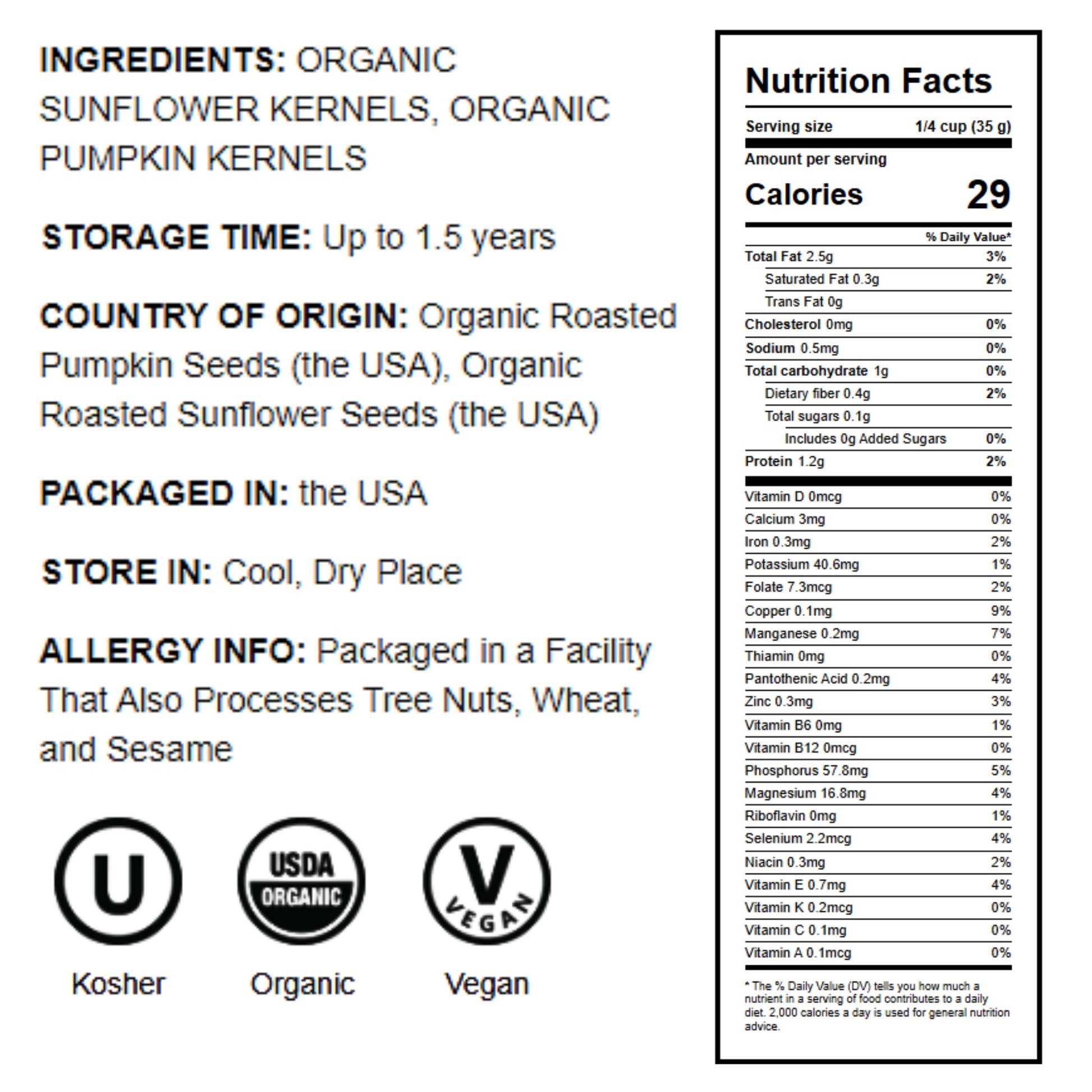 Organic Roasted Sunflower and Pumpkin Seed Mix is a simple yet nutritious way to enhance your meals and snacks. Whether enjoyed on its own or used as an ingredient in your favorite recipes, this mix provides a delicious and natural source of plant-based protein, fiber, and essential minerals.