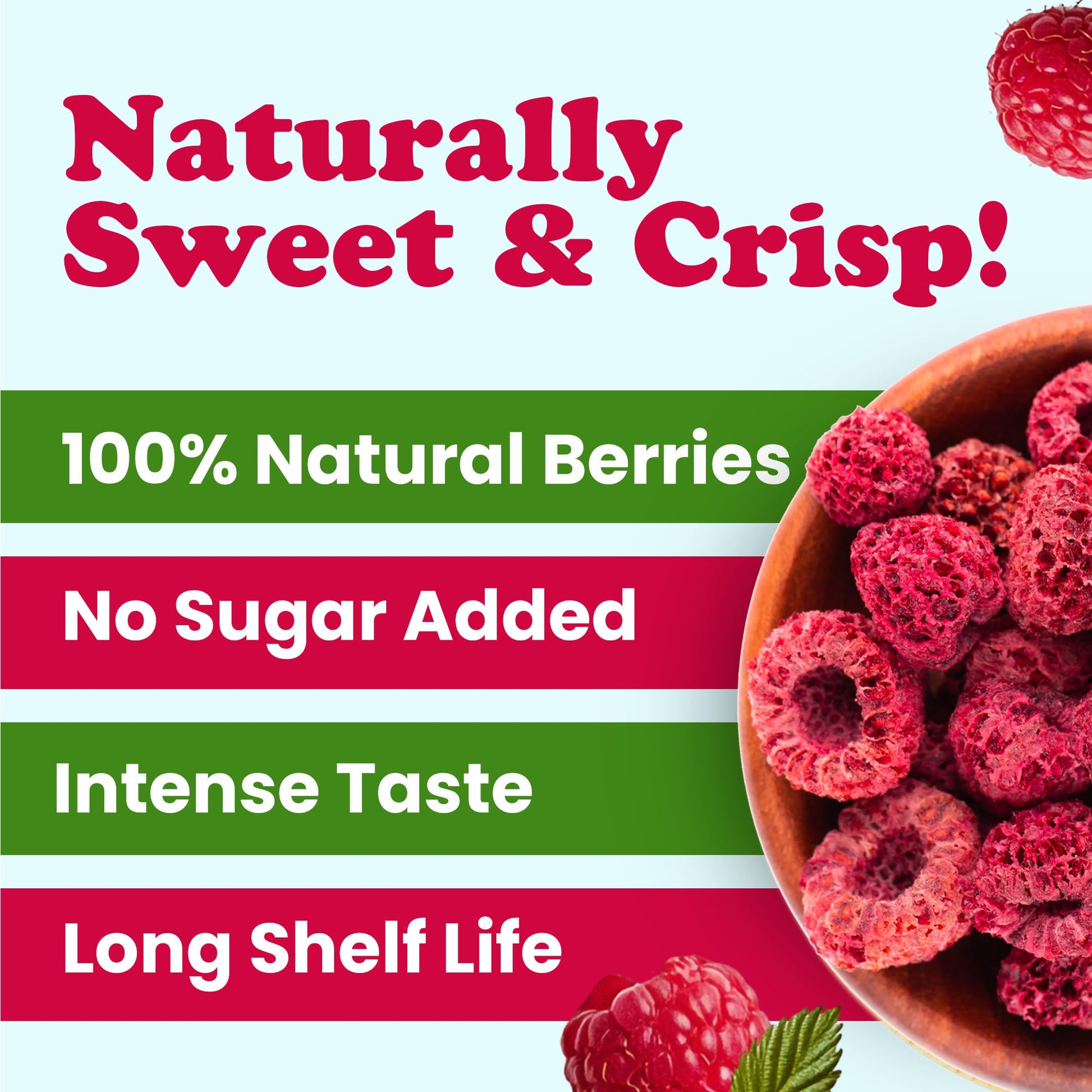 To maintain freshness and crispness, store the raspberries in a cool, dry place. Reseal the package tightly after opening or transfer to an airtight container. Avoid exposure to moisture and heat.